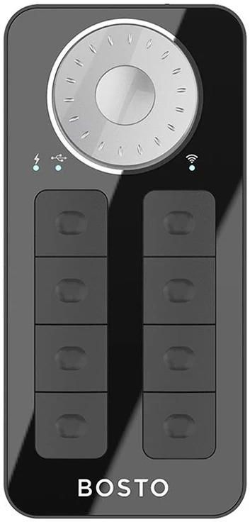 Pilot BOSTO SK-01 zwiększa efektywność pracy w programach graficznych. 8 programowalnych przycisków, precyzyjne pokrętło i 160 godzin baterii dają pełną kontrolę nad ulubionymi funkcjami. Multifunkcyjność Programowalne przyciski pozwalają na indywidualną konfigurację dla maksymalnej wygody użytkowania. Szeroka kompatybilność Smart Key jest kompatybilny z systemami operacyjnymi Windows 10/11. Pilot jest kompatybilny z tabletami graficznymi BOSTO oraz konkurencji. Działa z wieloma programami graficznymi. Rotacyjny kontroler wyboru Obrotowe kółko pozwala na szybkie dopasowanie wielkości pędzla, obrót płótna czy jego powiększenie/pomniejszenie. Pełny obrót kontrolera to przejście przez 24 punkty, które wydają przyjemny dźwięk. Łączność Smart Key łączy się z komputerem bezprzewodowo lub kablem USB.