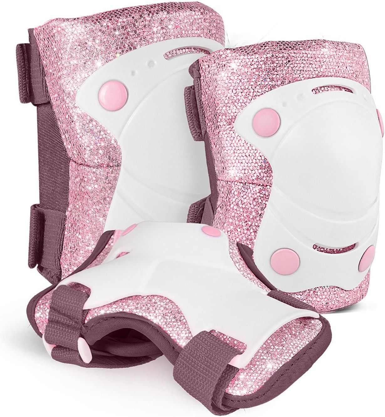 OCHRANIACZE CARIBOO BALLERINA Zestaw ochraniaczy dla małych księżniczek, które próbują swoich sił w jeździe na rolkach. Komplet składa się z ochraniaczy na kolana, łokcie i nadgarstki. Ochraniacze Ballerina: zapewniają wysoką ochronę podczas sportowych aktywności, dzięki konstrukcji w formie skarpety są elastyczne i wygodne, mieniąca się, brokatowa tkanina sprawia, że każda dziewczynka chętnie je zakłada. 4 warstwy ochronne Komplet Jump to aż cztery warstwy, które zapewniają Twojemu dziecku najwyższą ochronę. Twarda skorupa zewnętrzna chroni przed uderzeniami, warstwa z pianki tłumi siłę uderzenia, elastyczna skarpeta zapewnia wygodę, a zewnętrzna tkanina sprawia, że ochraniacze wyglądają bardzo ciekawie. Ergonomia i wygoda Konstrukcja w formie skarpety idealnie dopasowuje się do kształtu ciała, co gwarantuje wygodę podczas sportowych aktywności. Elastyczna i miękka dzianina nie upija i nie powoduje obtarć, więc mały sportowiec może skupić się na jeździe. Idealne dopasowanie Podwójne zapięcie na rzep pozwala dobrze dostosować rozmiar ochraniaczy. Dzięki odpowiedniemu dopasowaniu, ochraniacze pozostają na właściwym miejscu i nie zsuwają się nawet podczas najbardziej szalonych przejażdżek. Wytrzymała skorupa Zewnętrzna warstwa ochraniaczy wykonana została z wytrzymałego i odpornego tworzywa, dzięki czemu jazda na rowerze czy hulajnodze jest bezpieczniejsza. Ochrona nadgarstków Ochraniacze na nadgarstki są niezbędnym elementem zestawu każdego początkującego rolkarza. W razie upadku ochronią przed otarciami, dzięki czemu dziecko nie zrazi się do sportu. Właściwy rozmiar Nakolanniki - lekko zegnij nóżkę dziecka. Zmierz obwód nogi ok. 4-5 cm powyżej górnej krawędzi rzepki kolana oraz ok. 4-5 cm poniżej dolej krawędzi rzepki kolana. Nałokietniki – lekko zegnij rękę dziecka. Zmierz obwód ręki ok. 5 cm powyżej i poniżej łokcia. Ochraniacze na nadgarstki – zmierz obwód dłoni w najszerszym miejscu wokół 4 kostek palców (bez kciuka) oraz obwód nadgarstka. Porównaj wymiary z naszą tabelą rozmiarów