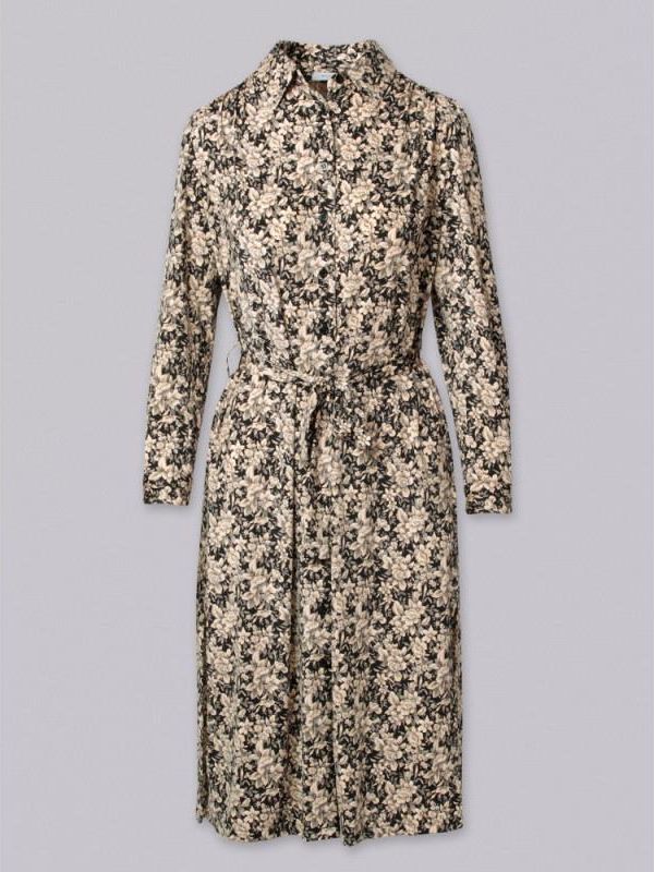 Czarna szmizjerka o luźnym kroju w drobne beżowe kwiatki, klasyczny kołnierzyk i rękawy 3/4