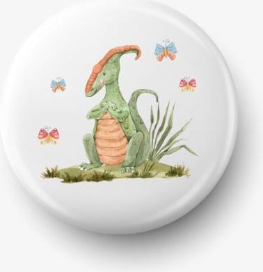 Button z dinozaurem parazaurolofem dla fana tych prehistorycznych zwierząt.