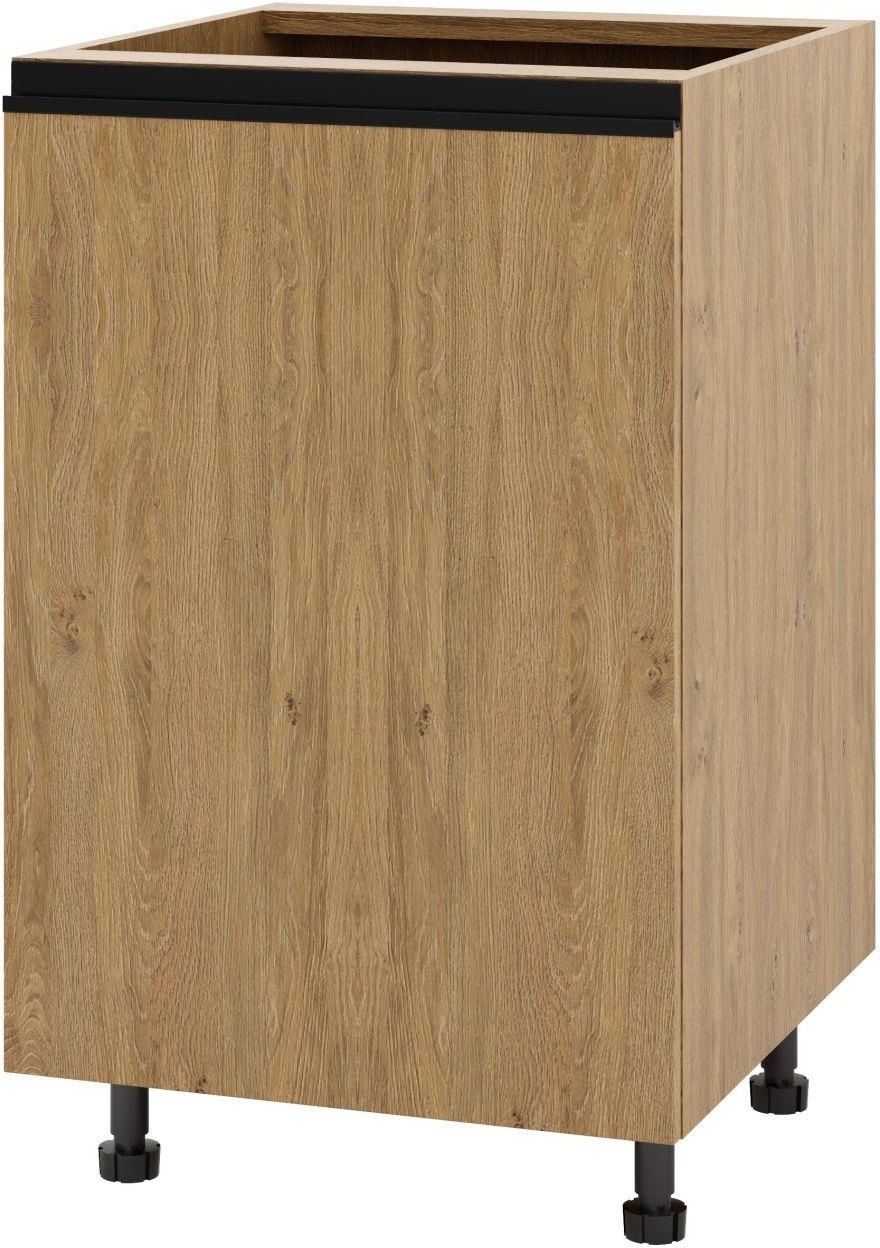 BARI PLUS SZAFKA DOLNA LEWA D-50 DĄB KAMIENNY to pojemna, lewostronna i jednodrzwiowa szafka dolna do kuchni skierowana do aranżacji nowoczesnych, loft, industrialnych i eklektycznych. Prezentowana kolekcja kuchni Komfort posiada laminowane fronty, które charakteryzują się łatwością pielęgnacji, odpornością na uszkodzenia mechaniczne oraz naturalnym wyglądem wiernie odwzorowującym strukturę dębu. Ponadto meble kuchenne w stylu loft o minimalistycznej formie oraz aluminiowych uchwytach w formie czarnych listew wniosą do wnętrza zarówno przytulność, jak również nowoczesną lekkość i harmonię.