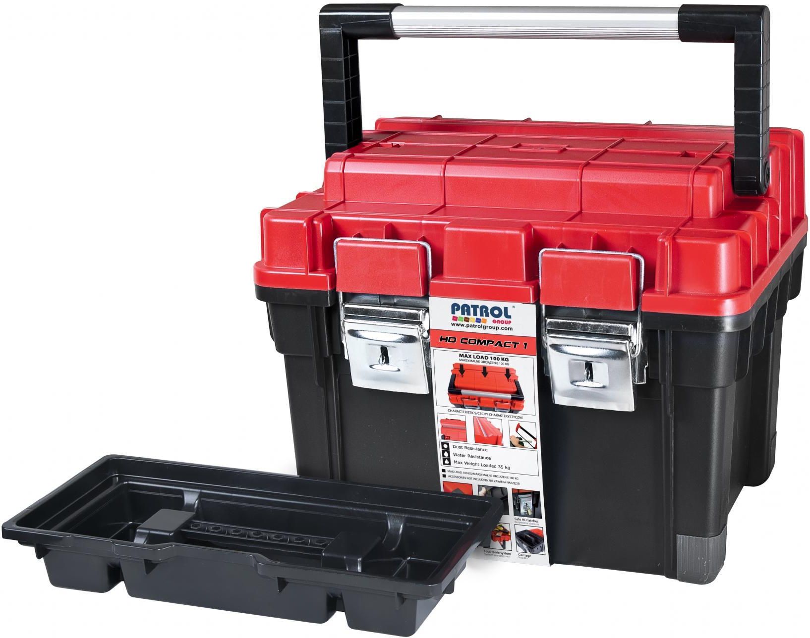 Skrzynka narzędziowa HD Compact 1 do pracy w każdych warunkach, cechuje się wytrzymałością, odpornością na szkodliwe działanie wody i pyłu. Przydatna dla każdego profesjonalisty oraz majsterkowicza, który ceni sobie porządek w swoim miejscu pracy. Pokrywa w kolorze czerwonym. Wymiary 450 x 350 x 350.EAN: 5901238215387