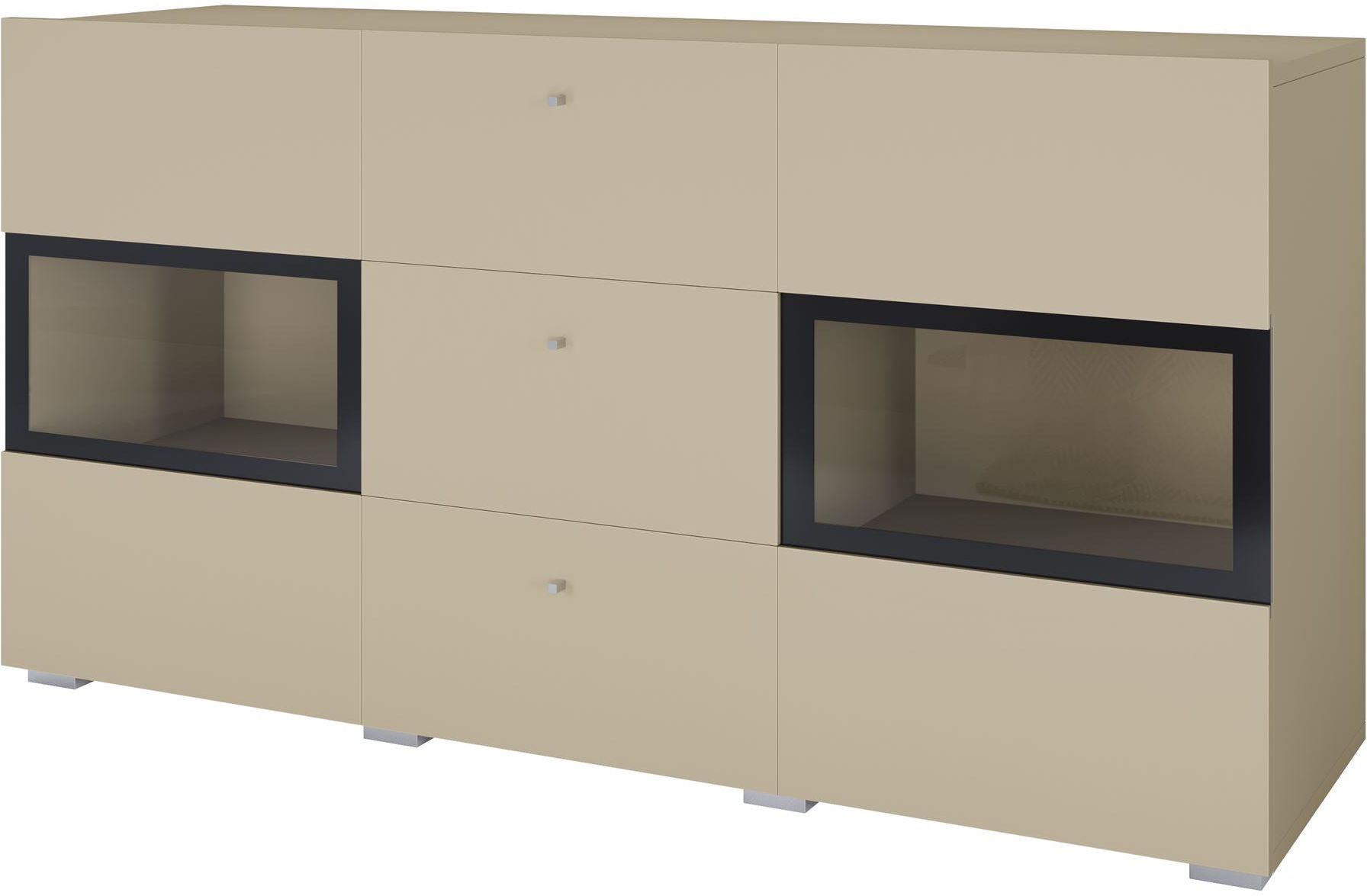 Komoda BAROS w kolorze jasnego beżu to stylowa propozycja do salonu, w którym liczy się spójny wygląd, lekkość formy i ponadczasowa estetyka. Stonowana kolorystyka rozjaśnia wnętrze i wprowadza spokojny, harmonijny klimat, dzięki czemu mebel doskonale odnajduje się w nowoczesnych i minimalistycznych aranżacjach. Prosta bryła bez zbędnych zdobień podkreśla elegancki charakter komody i sprawia, że stanowi ona uniwersalny element wyposażenia. Funkcjonalne przechowywanie i estetyczna ekspozycja Przemyślany układ komody BAROS zapewnia wygodne miejsce do przechowywania przedmiotów codziennego użytku. Zamykane fronty pozwalają zachować porządek i estetykę przestrzeni, natomiast przeszklone strefy nadają bryle lekkości i umożliwiają wyeksponowanie dekoracji, książek lub dodatków. Dzięki temu komoda pełni nie tylko funkcję praktyczną, ale również dekoracyjną, stając się ważnym elementem aranżacji salonu. Uniwersalna komoda do nowoczesnego salonu Beżowa komoda BAROS to mebel, który z łatwością dopasujesz do pozostałych elementów wyposażenia. Neutralny odcień harmonizuje z różnymi kolorami i dodatkami, dając dużą swobodę aranżacyjną. Komoda sprawdzi się zarówno jako samodzielny mebel, jak i część większej zabudowy, tworząc spójną i estetyczną przestrzeń. To idealny wybór dla osób poszukujących nowoczesnej komody do salonu, łączącej funkcjonalność z eleganckim wyglądem. Komoda BAROS w kolorze jasnego beżu to elegancki i funkcjonalny mebel do salonu, który łączy nowoczesny design z praktycznym miejscem do przechowywania i estetyczną ekspozycją dekoracji. Wymiary Szerokość: 132 cm Wysokość: 70 cm Głębokość: 39 cm