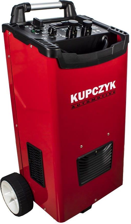 Zdarzyło Ci się, że padł Ci akumulator i nie mogłeś odpalić swojego samochodu ? Nie martw się! Kupując prostownik Kupczyk DFC-650T Twój problem zostanie rozwiązany. Dzięki naszemu urządzeniu będziesz mógł skutecznie naładować swój akumulator a w razie potrzeby użyć funkcji wspomagającej rozruch i od razu uruchomić pojazd. Prostownik do ładowania akumulatorów Kupczyk DFC-800T przeznaczony jest do ładowania akumulatorów kwasowych prądem o natężeniu 12V lub 24V. oraz do rozruchu samochodów osobowych, vanów, busów z silnikami benzynowymi oraz diesla, małych ciężarówek oraz lekkiego sprzętu budowlanego. Urządzenie wyposażone i intuicyjny panel sterowania z praktycznym elektronicznym wyświetlaczem. Na panelu znajdują się wygodne przełączniki: 12V/24V, przyciski wolnego i szybkiego ładowania oraz przycisk do rozruchu. Ponadto prostownik posiada bezpiecznik chroniący przed przeciążeniem. Dodatkowymi atutami urządzenia są koła ułatwiające transport prostownika oraz przednia kieszeń do schowania przewodów. Model DFC-800T - został wyposażony w czasowy wyłącznik ładowania na 4,5 i 6 stopniu ładowania. Umożliwia on ustawienie czasu ładowania na: 15,30,45,60 minut. Po upłynięciu czasu ładowanie zostanie zakończone. Prostownik do ładowania akumulatorów z funkcja rozruchu Kupczyk Model: DFC-800T Prostownik do ładowania 12 i 24 woltowych akumulatorów kwasowych. Zasilanie jednofazowe. Zabezpieczenie przeciw zwarciu biegunów, przeciążeniu i odwrotnej biegunowości. Elektroniczny wyświetlacz prądu ładowania. Urządzenie posiada przewody o długości 2 m zakończone zaciskami. Sześć stopnie ładowania: ładowanie - 1 Stopień ładowanie - 2 Stopień ładowanie - 3 Stopień ładowanie - 4 Stopień (wyłącznik czasowy) ładowanie - 5 Stopień (wyłącznik czasowy) ładowanie - 6 Stopień (wyłącznik czasowy) Parametry techniczne Napięcie zasilania: 230V/50Hz Napięcie prądu ładowania 12/24 V Prąd ładowania 12V: 80A Prąd ładowania 24V: 90A Maksymalny prąd ładowania: 120A Pojemność akumulatorów 12V - 20-1400 Ah Pojemność akumulatorów 24V - 20-1400 Ah Prąd rozruchu: 540A Pobór mocy: 14 kW Stopień ochrony IP20 Waga 28,5 kg Wymiary 730x360x280 Opis panelu: Amperomierz cyfrowy Kontrolka ładowania Przełącznik regulacji prądu ładowania/rozruchu Czasowy wyłącznik ładowania Zacisk + 24V Zacisk + 12V Wspólny zacisk ujemny 12 i 12V Bezpiecznik Przewód zasilający 230V