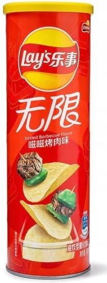 Lay's Stax Sizzled BBQ 90g Lay's Stax Sizzled Barbecue Flavor - chipsy ziemniaczane o smaku grilowanej wołowiny. Waga netto: 90g Kraj pochodzenia: Chiny Data ważności: 29.09.2023 Składniki: ziemniaki, olej roślinny, przyprawa do grilla (cukier, dekstroza, sól, maltodekstryna, melasa, drożdże …