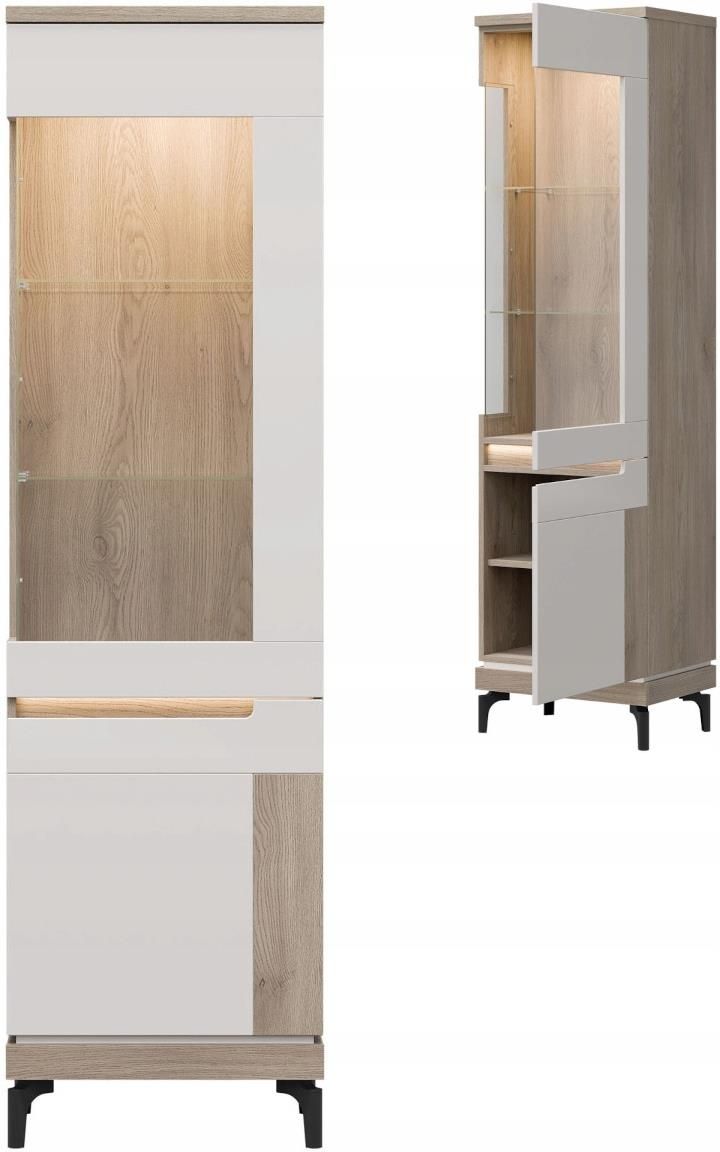 Liveo Meble Witryna Prawa Wysoka Gablota Szklana Wąska Do Salonu Dąb Cremona Aston An06 15667325346 Łapy