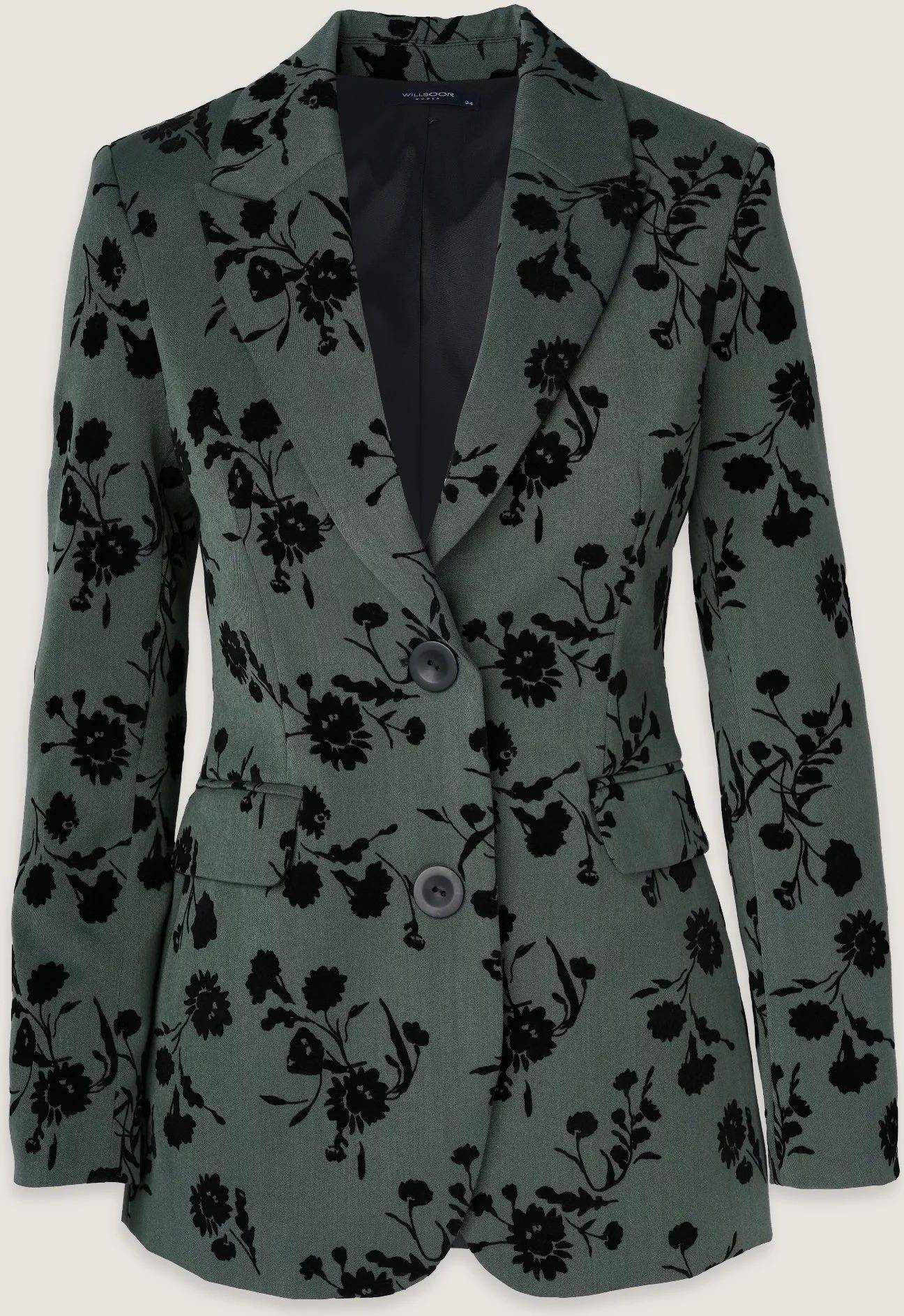 Marynarka damska Willsoor Wybierając elegancką, jednorzędową marynarkę damską marki Willsoor bez wątpienia przekonasz się do noszenia jej nie tylko od święta, ale również na co dzień! Marynarka jest lekka i wygodna, dzięki czemu nawet nie poczujesz, że masz na sobie tak niebywale elegancki strój. Została uszyta z wysokiej jakości materiału, który jest elastyczny i delikatny w dotyku. Krój wyraźnie podkreśla linię talii. Guziki oraz kieszenie z patkami stylowo uzupełniają nowoczesny design marynarki. Skład tkaniny: 18% wiskoza, 79% poliester, 3% elastan Skład podszewki: 98% poliester, 2% elastan Rodzaj marynarki: jednorzędowa, zapinana na dwa guziki Kolor główny: szaro-zielona w czarne kwiaty Producent: Willsoor Gwarancja: 24 m-ce Uszyta w Polsce