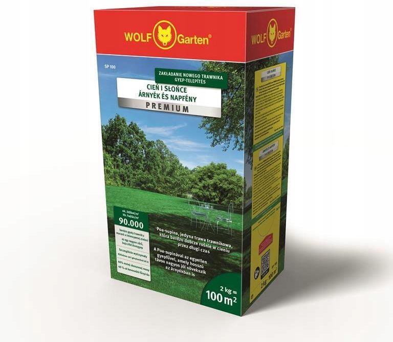 Trawa WOLF-Garten SP 100 Słońce i Cień Mieszanka nasion marki WOLF-Garten SP 100 Mieszanka traw przygotowana przez firmę WOLF-Garten z myślą o powierzchni stale znajdujących się w dużym nasłonecznieniu bądź zacienieniu. Trawnik oparty na prezentowanej mieszance jest nadzwyczajnie gęsty nawet do 90 …