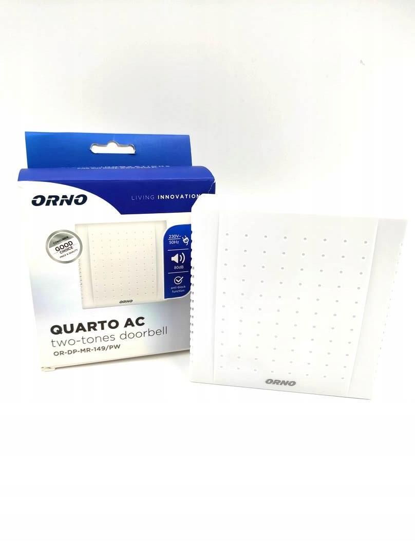 Dzwonek przewodowy ORNO QUARTO OR-DP-MR-149/PW – Dwutonowy, 230V, Śnieżnobiały Opis produktu Wzbogać swoje wnętrze o dzwonek przewodowy ORNO QUARTO OR-DP-MR-149/PW, który łączy elegancję z funkcjonalnością. Wyposażony w wyraźny, dwutonowy sygnał „BIM-BAM” oraz stylowy, śnieżnobiały design, doskonale sprawdzi się w każdym domu, mieszkaniu, biurze czy lokalu użytkowym. Produkt został zaprojektowany z myślą o trwałości i estetyce, zapewniając długotrwałe i niezawodne działanie. Najważniejsze cechy produktu Dwutonowy dźwięk: Wyraźny i przyjemny sygnał „BIM-BAM” zapewnia skuteczną informację o przybyciu gości. Nowoczesny design: Klasyczna, śnieżnobiała obudowa pasuje do każdego stylu wnętrza. Bezpieczeństwo: Wbudowana funkcja przeciwblokady łącznika chroni przed przeciążeniem, zapewniając długą żywotność urządzenia. Łatwy montaż: Prosty montaż natynkowy, idealny do pomieszczeń z zasilaniem 230V AC. Trwałość i niezawodność: Wysokiej jakości materiały gwarantują niezawodne działanie przez lata. Dane techniczne Model: OR-DP-MR-149/PW Zasilanie: 230V AC, 50Hz Pobór mocy: 60W Poziom głośności: 80 dB Materiał: Wysokiej jakości tworzywo sztuczne Kolor: Śnieżnobiały Wymiary: 110 mm (szerokość) x 110 mm (wysokość) x 39 mm (głębokość) Stopień ochrony: IP20 (do użytku wewnętrznego) Temperatura pracy: od -10°C do +40°C Zastosowanie Domy jednorodzinne Mieszkania Biura Sklepy Budynki użyteczności publicznej Zestaw zawiera Dzwonek przewodowy ORNO QUARTO OR-DP-MR-149/PW Elementy montażowe Instrukcja obsługi Dlaczego warto wybrać ten produkt? Niezawodność: Produkt renomowanej marki ORNO, wykonany z najwyższej jakości materiałów. Łatwość instalacji: Szybki montaż i intuicyjna obsługa. Uniwersalność: Klasyczny biały design pasuje do każdego wnętrza. Bezpieczeństwo: Wbudowane zabezpieczenie przeciwblokady zwiększa trwałość i niezawodność urządzenia.