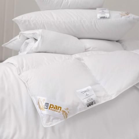 Lekka, sprężysta i przewiewna kołdra Mild Pan Materac z naturalnym wypełnieniem z puchu gęsiego zapewniająca dobrą termoizolację.