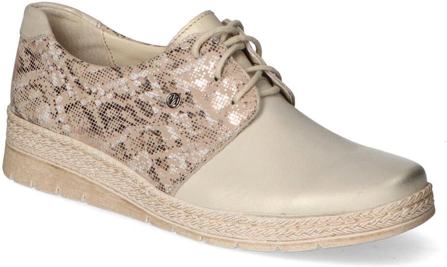 Wygodne półbuty popularnej marki Helios:- wykonane z najlepszej jakości licowej skóry naturalnej licowej - miękka, skórzana wkładka zapewnia komfort podczas użytkowania- wnętrze pokryte zostało skórą naturalną - koturn o wys.3 cm zapewni stabilizację - sznurowana cholewka pozwala na dopasowanie obuwia do stopy - złoty kolor w połączeniu z pięknym wzorem tworzą niesamowity efekt!