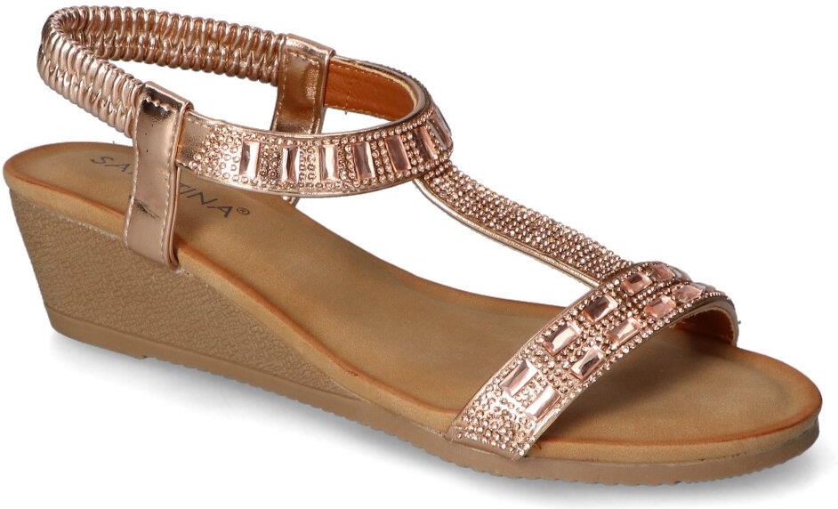 Sandały Sabatina, wykonane ze skóry ekologicznej, to doskonały wybór dla kobiet, które pragną połączyć styl z komfortem. Te eleganckie sandały w odcieniu różowego złota wyróżniają się subtelnymi detalami, które dodają im blasku, a jednocześnie sprawiają, że są idealnym rozwiązaniem na letnie dni.Model charakteryzuje się lekko podwyższonym obcasem oraz wygodnymi paskami, które zapewniają stabilność i komfort noszenia. Ozdoby w postaci kryształków sprawiają, że każda para sandałów Sabatina staje się wyjątkowym akcentem każdej stylizacji. Elastyczny pasek wokół kostki gwarantuje idealne dopasowanie, co czyni je idealnym wyborem na długie spacery oraz letnie imprezy.Sandały Sabatina doskonale komponują się z letnimi sukienkami, spódnicami czy szortami, dodając każdemu lookowi lekkości i kobiecego uroku. Dzięki swojej uniwersalnej kolorystyce, idealnie sprawdzą się zarówno na co dzień, jak i na bardziej formalne wyjścia.Inwestując w sandały Sabatina, wybierasz modny i praktyczny element garderoby, który będzie Ci towarzyszyć przez wiele sezonów. Z tymi sandałami każdy krok staje się przyjemnością, a Ty będziesz czuć się stylowo i komfortowo w każdej sytuacji.
