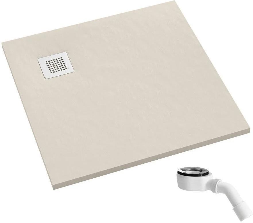 Schedpol Kalait Cashmere Stone brodzik kwadratowy 80x80 cm 3.3100/PK/ST-M2 5905805729185 Schedpol Kalait Cashmere Stone brodzik kwadratowy 80x80 cm 3.3100/PK/ST-M2 Brodziki z serii Kalait o strukturze kamienia, posiadają klasę antypoślizgową A (wg DIN 16165 – zał A.), co znacznie zwiększa bezpieczeństwo strefy prysznicowej. Ta wyjątkowa powierzchnia spełnia wymogi najnowszych designerskich stylizacji i idealnie łączy elementy natury i nowoczesności w łazience. Brodziki wykonane w technologii Stabilsound Plus® wyróżniają się niezwykłą wytrzymałością, odpornością na uderzenia oraz małą wagą. Montaż jest łatwy i może zostać wykonany przez jedną osobę. Brodzik można dociąć pod wymiar łazienki. Zestaw zawiera brodzik serii Kalait Cashmere Stone, maskownicę ze stali nierdzewnej M2 oraz syfon czyszczony od góry wiodącej marki (całkowita wysokość zestawu w miejscu zasyfonowania wynosi 9,5 cm). Dane techniczne: Długość 80cm Szerokość 80cm Promień - Wysokość 3,5cm Głębokość spad do 2% 3.3100/PK/ST-M2