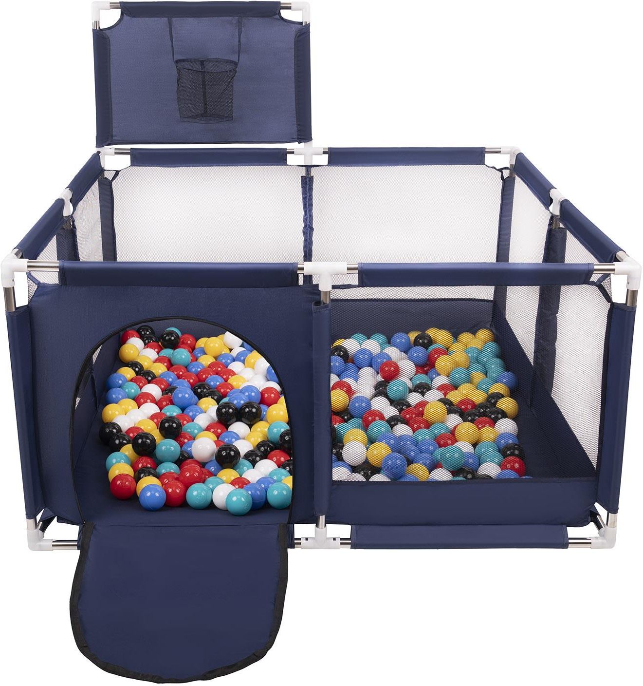 KK-100X-67-BLUE Selonis Boisko KK-100X z piłeczkami 6cm niebieski: czarny-biały-niebieski-czerwony-żółty-turkus 125x125x105/100piłek Zabawka kojec Składany kojec z plastikowymi piłkami w kształcie mini-boiska zapewni Twojemu dziecku godziny zabawy. Wewnątrz jest wystarczająco dużo przestrzeni, aby w zabawie mogło uczestniczyć swobodnie kilkoro dzieci. Jednocześnie kojec można w łatwy sposób złożyć, dzięki czemu można go schować, lub zabrać ze sobą na wczasy, piknik, czy do znajomych. Jedna ze ścianek jest wyposażona w siatkowy kosz do koszykówki umożliwiając małym dzieciom rywalizację w grze zespołowej. WŁAŚCIWOŚCI - stabilna konstrukcja z aluminiowymi rurkami umożliwia łatwo go złożyć i rozłożyć - kojec wyposażony w boczne wejście z zamkiem błyskawicznym ułatwiające wejście i wyjście dla małych dzieci - boczne ścianki wykonane z siatki umożliwiają obserwację dzieci podczas zabawy, ortalion o wysokiej gramaturze jest wytrzymały i nie strzępi się - zamknięta konstrukcja utrzymuje piłeczki wewnątrz pomagając zachować porządek - delikatne kolory materiału i mnóstwo kombinacji piłek pozwalają dobrać odpowiedni wariant dla Twojego malucha lub dostosować kojec do każdego wnętrza - wyprodukowany z bezpiecznych, nietoksycznych materiałów - gładka powierzchnia, łatwa do utrzymania w czystości SKŁAD: ortalion 100% poliester WYMIARY: 125x125xx66 cm, wysokość z koszem 105 cm W zestawie znajdują się kolorowe piłki o średnicy 6 cm. Piłeczki wyprodukowane są w Europie z nietoksycznego materiału. Posiadają certyfikat CE. Przyjemne i lekkie, a zarazem elastyczne i odporne na zniekształcenia : po ściśnięciu odzyskują swój pierwotny kształt nie robiąc dziecku krzywdy. SKŁAD: 100% polietylen Zabawa powinna odbywać się pod nadzorem osoby dorosłej.