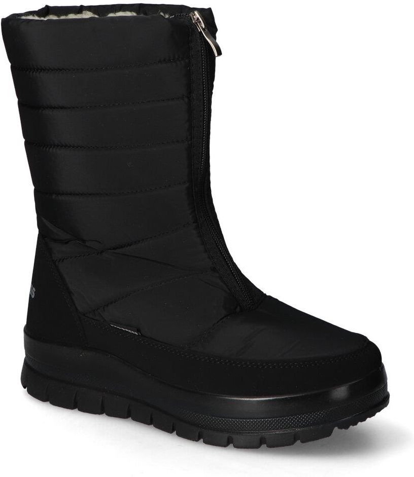 Wygodne śniegowce damskie: - cholewka wykonana została z materiału tekstylnego - ocieplane wnętrze aby zapewnić ciepło w chłodne dni - suwak ułatwia dopasowanie szybkie i wygodne zakładanie - podeszwa o grubości 4 cm zapewnia odpowiednią stabilizacje - zamek błyskawiczny ułatwia zakładanie i dopasowanie obuwia - klasyczny czarny kolor i modny fason tworzą idealne połączenie!