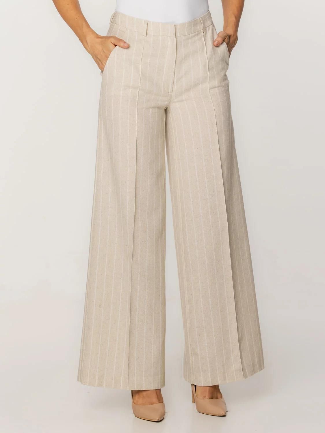 Spodnie z szeroką nogawką Spodnie szwedy to totalny must-have w garderobie każdej stylowej kobiety! Precyzyjne szwy i zakładki dodają im elegancji. Luźny krój z bardzo szerokimi nogawkami typu wide leg i przeszytym kantem (bez możliwości zaprasowania) gwarantuje stylowy wygląd niezależnie od okazji! Doskonałej jakości mieszanka tkanin wizualnie przypominająca len nadaje im letni i naturalny charakter. Spodnie świetnie sprawdzą się w zestawieniu z koszulą i żakietem, jak również z T-shirtem i sandałami. Posiadają wsuwane kieszenie oraz szlufki na pasek. Zapinane są na haftkę i mają ukryty suwak. Dostępne w różnych kolorach. Tkanina: 40% Rayon (sztuczny jedwab), 40% poliester, 20% len naturalny Kolor główny: beżowy w cienkie, białe prążki Nogawki: szerokie z przeszytymi kantami Kieszenie: dwie boczne Producent: Willsoor Gwarancja: 24 m-ce Uszyte w Polsce