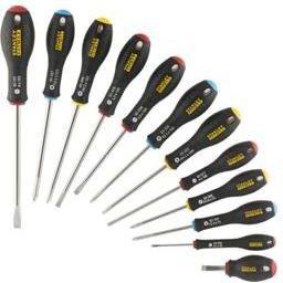 ZESTAW 12 WKRĘTAKÓW STANLEY® FATMAX® -> FMHT65426-0 +100% trwałości końcówki* Precyzyjnie obrabiana końcówka CNC zapewnia wytrzymałość, wydajność i długą żywotność produktu. Zapewnia optymalne dopasowanie wymiarowe, dokładność i kontrolę oraz zmniejsza bicie. Piaskowana dla ochrony przed korozją i zużyciem. Wyprodukowane w fabryce STANLEY® Arbois we Francji zgodnie z rygorystycznymi normami i specyfikacjami dla zapewnienia wyjątkowej użyteczności, trwałości i niezawodności. Zbudowane z wytrzymałej stali węglowo-krzemowej dla zwiększenia wytrzymałości, wydajności i wydłużenia żywotności produktu Stanowią część nowej generacji profesjonalnych wkrętaków STANLEY® FATMAX® Oznaczone kolorami, ze specyfikacją i typem napędu wyraźnie zaznaczonym na powierzchni, co ułatwia identyfikację odpowiedniego narzędzia do każdego zadania Duża, ergonomiczna rękojeść z trójmateriałowego materiału Softgrip, zaprojektowana w celu zmniejszenia zmęczenia i zwiększenia komfortu podczas powtarzalnych czynności Wąska talia i gładka, wypukła końcówka zapewniają doskonały moment obrotowy, szybkość, kontrolę i łatwość użycia w wymagających zastosowaniach związanych z mocowaniem lub luzowaniem, idealne do wkręcania wkrętów do drewna Otwór zintegrowany z rękojeścią, dzięki któremu narzędzia nigdy nie zostaną zgubione lub upuszczone, a także zapewnia użytkownikom dodatkowe bezpieczeństwo podczas pracy na wysokości. Typy końcówek: Równoległa 2,5 mm X 50 mm, 4 mm X 100 mm, 5,5 mm X 150 mm. Spłaszczone 5,5 mm X 100 mm, 6,5 mm X 30 mm, 8 mm X 150 mm. Philips PH0 X 75mm, PH1 X 100mm, PH2 X 125mm. Pozi PZ0 X 75mm, PZ1 X 100mm, PZ2 X 125mm. STANLEY to jeden z najpopularniejszych znaków firmowych na świecie. STANLEY to rozpoznawany amerykański producent i dostawca wysokiej jakości markowych narzędzi ręcznych, drzwi, systemów mocujących, systemów magazynowania oraz elektronarzędzi i elementów hydraulicznych do użytku profesjonalnego, przemysłowego, a także dla amatorów. Marka STANLEY od wielu lat jest dobrze znana polskim majsterkowiczom i osobom korzystającym na co dzień z narzędzi ręcznych. W wyniku rozszerzenia i zróżnicowania swojej oferty, STANLEY posiada obecnie kilkadziesiąt tysięcy nowoczesnych produktów. Ułatwiają one ludziom wykorzystywać ich umiejętności, wyrażać twórczy zapał oraz realizować wizje poprzez pracę.