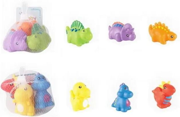 Zestaw gumowych dinozaurów do zabawy w wodzie. Kolorowe figurki wykonane z miękkiego materiału, idealne do kąpieli. Dostępne różne wzory i kolory, zestaw wybierany losowo. Cena dotyczy jednego zestawu. Produkt zapakowany w worek z siateczki. Zabawka przeznaczona dla dzieci od 6 miesiąca życia.