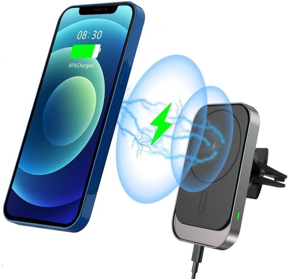 Wysoce jakościowa ładowarka magnetyczna Tech-Protect CW19 to połączenie wygodnego, magnetycznego mocowania oraz bezprzewodowego ładowania. CW19 to perfekcyjnie wykonany uchwyt samochodowy montowany do kratki wentylacyjnej dedykowany do urządzeń Apple z funkcją bezprzewodową MagSafe. Obracana głowica o 360 stopni pozwala na pełny obrót urządzenia, co zapewni wysoki komfort użytkowania i idealnego dopasowania pod dowolnym kątem. Uchwyt wykonany jest bardzo porządnie, posiada wyjątkowo mocne magnesy oraz zapewnia 15W szybkie ładowanie. * Funkcja magnetyczna MagSafe działa tylko i wyłącznie bezpośrednio do telefonu lub do etui z wbudowanym oczkiem magnetycznym o zastosowaniu MagSafe. CECHY PRODUKTU: - 100% Oryginalny - Zapakowany w oryginalne opakowanie - Zapewnia obrót o 360° - Silny i stabilny chwyt telefonu - Napięcie wejściowe: 5V/2A, 9V/2A - Moc wyjściowa: 5W/7.5W/10W/15W ZESTAW ZAWIERA: 1 x Uchwyt Samochodowy Tech-Protect CW19 1 x Kabel Type-C
