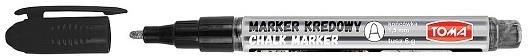 Markery z rozpuszczoną kredą, do pisania po tablicach czarnych, białych, po szkle i powierzchniach plastikowych, zmywalne wodą np. tradycyjną gąbką, do użytku wewnątrz pomieszczeń, nasączalne końcówki fibrowe. Okrągła końcówka 1,5mm. Kraj produkcji: PL