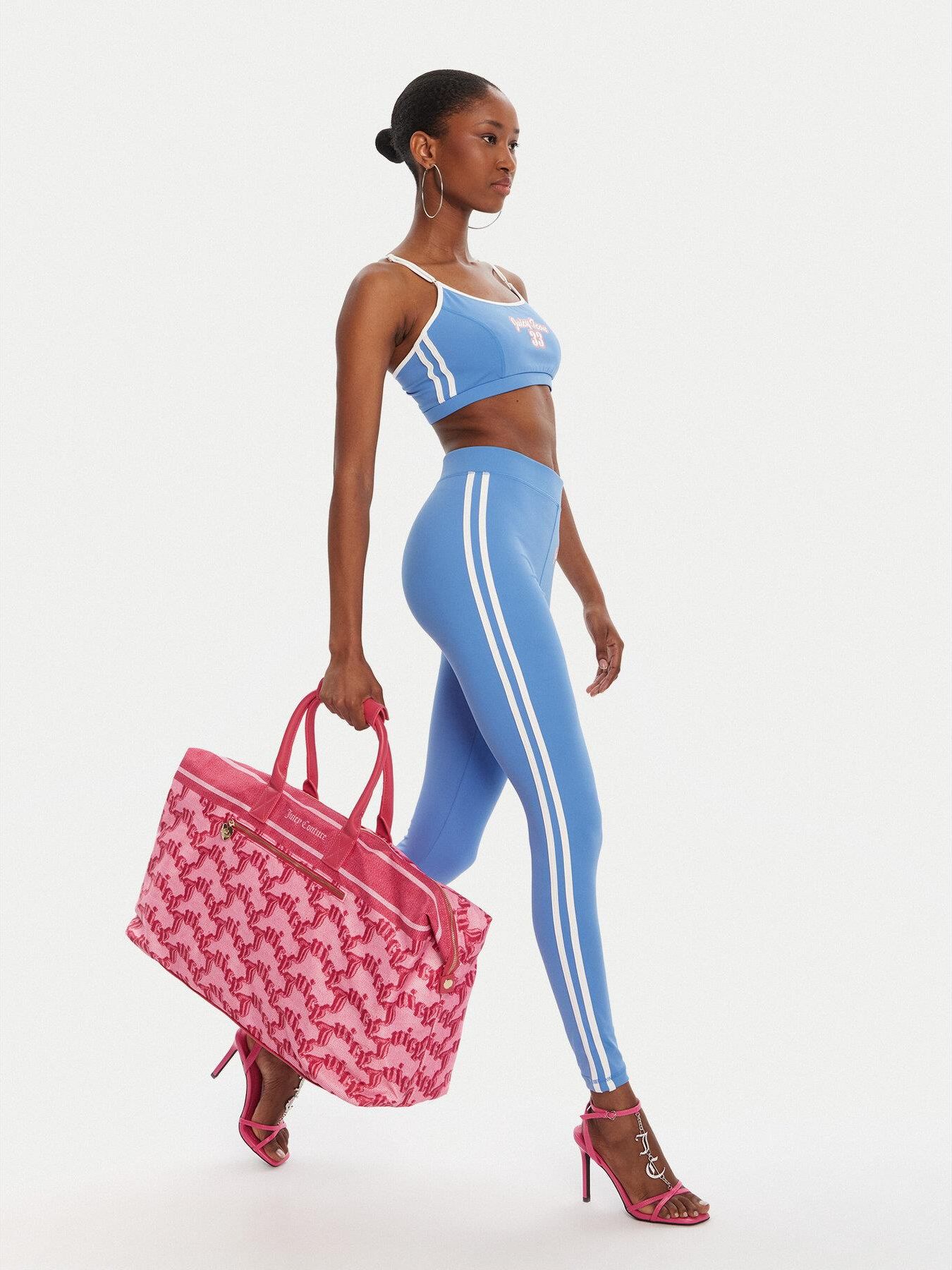 Torba weekendowa Juicy Couture to stylowy wybór dla kobiet, które cenią modny design i funkcjonalność. Wykonana z materiału tekstylnego, jest lekka i wygodna w użytkowaniu, a jej miękka konstrukcja zapewnia komfort noszenia. Dzięki dużemu rozmiarowi mieszczącemu format A4, sprawdzi się podczas krótkich wyjazdów lub codziennego użytkowania. Regulowany i dopinany pasek pozwala na łatwe dopasowanie torby do każdej sylwetki, a nóżki na spodzie chronią ją przed zabrudzeniami. Nadruk dodaje jej wyjątkowego charakteru, czyniąc ją idealnym dodatkiem na każdą okazję! Amerykańska marka Juicy Couture powstała na początku XXI wieku i zasłynęła welurowymi dresami z błyszczącymi kryształkami, które nosiły najważniejsze nazwiska show-biznesu w tym Madonna, Paris Hilton czy Jennifer Lopez! Kultowy komplet dresowy przyniósł sławę marce i stał się reprezentantem Y2K. Na przestrzeni lat brand rozszerzył swój asortyment m.in. o torebki, buty i akcesoria, które wpisały się w klimat wczesnych lat 2000. Juicy Couture to luksusowa marka, która zachwyca pastelowymi barwami, puszystymi przytulnymi materiałami i efektownymi błyszczącymi zdobieniami w estetyce epoki, z której pochodzi. Musisz to zobaczyć!
