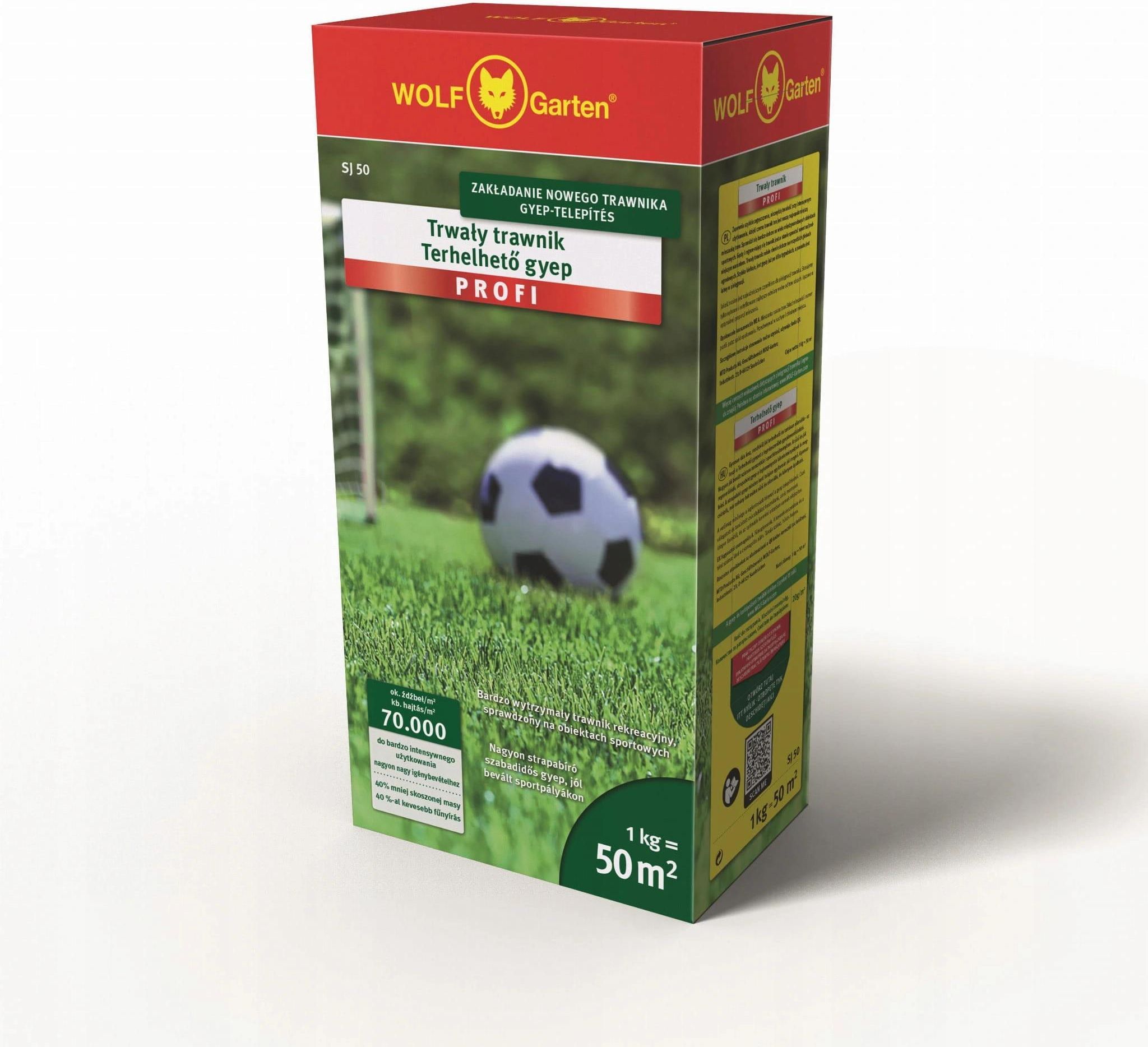 Mieszanka nasion traw premium w ofercie marki WOLF-Garten. Trawnik oparty na tym zestawieniu nasion osiąga gęstość do 70 000 pędów na metr kwadratowy. Zastosowane gatunki traw cechuje duża elastyczność na nasłonecznienie i zacienienie oraz dużą odporność na działanie szkodników, grzybów oraz chwastów. Nasiona trawnik wysoce odporny na deptanie dzięki czemu doskonale nadają się do zastosowania na obiektach sportowych. 1kg=50m2
