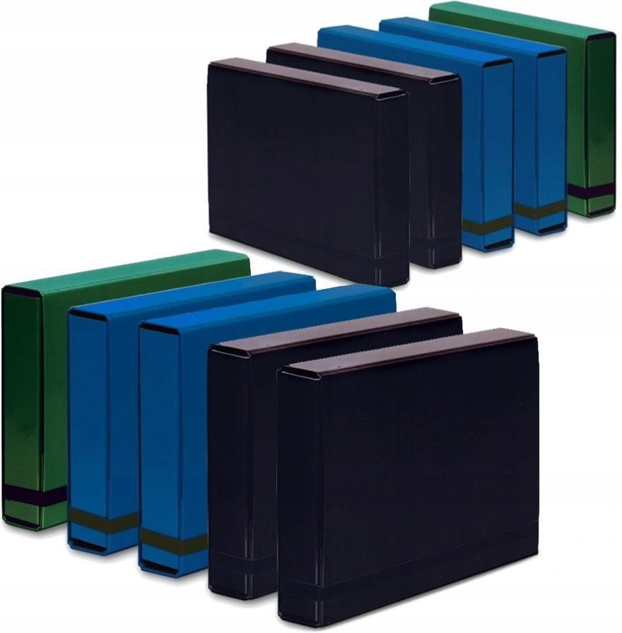 Teczka A4 Vaupe BOX na Dokumenty 50mm z Gumką 10 Szt Mix kolorów Biurowy 5 Kolorów (4x czarny, 4x niebieski, 2x zielony) Wykonana z twardej tektury o grubości 2 mm Posiada czarną wyklejkę z wysokiej jakości surowca Pokryta folią polipropylenową Do formatu A4 Szerokość grzbietu do 50 mm Zamykana na …