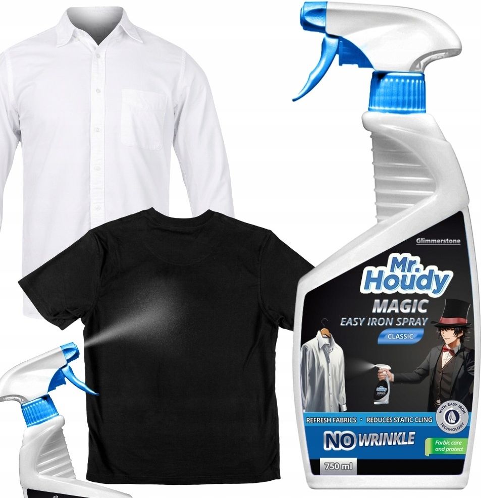 Mr.Houdy Iron Spray ŻELAZKO W SPRAYU 750ml DLA SZYBKICH I EFEKTYWNYCH REZULTATÓW Magic Easy Iron Spray to innowacyjny produkt, który ułatwia codzienne prasowanie ubrań i tkanin, zapewniając im długotrwałą świeżość. Dzięki starannie opracowanej formule opartej na naturalnych składnikach Magic …
