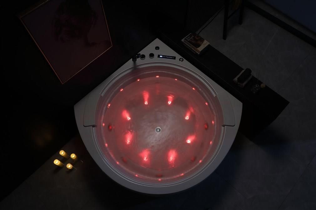 Opis produktu Model: EB-8005 Producent: Zepehof Seria: Benedito Line Wymiary: 1500mm * 1500mm * 640mm Materiał wykonania: biały akryl sanitarny 4 warstwowy utrzymujący ciepło firmy Reme TM Akryl jest odporny przed uszkodzeniami i zarysowaniem. Armatura wykonana z stali chromowanej. Powierzchnia akrylu odporna na promienie UV i utracenie połysku. Akryl jest bialutki bez zbędnych domieszek mas plastycznych ABS itp.., powłoka antybakteryjna, odporna ma matowienie pod wpływem czynników zewnętrznych. Akcesoria: nogi regulowane usytuowane na stelażu kompletna futurystyczna bateria z przełącznikami funkcyjnymi korek spustowy z mechanizmem przelewowym w ścianie wanny przewód odprowadzający wodę podświetlany panel sterowania funkcjami – elektroniczny dotykowy z bluetooth wężyki o stalowym splocie do przyłączeń wodnych wtyczka z przewodem elektrycznym 230V słuchawka prysznicowa LED [świeci siłą grawitacyjną wody w różnych kolorach w zależności od temperatury wody, nie są potrzebne baterie!!!] Materiał wykonania: Akryl sanitarny czterowarstwowy biały o grubości od 3mm-4.5mm, wzmocniony od spodu włóknem szklanym i żywicą o grubości 10mm-15mm. Akryl jest odporny przed uszkodzeniami i zarysowaniem. Armatura wykonana z stali chromowanej. Opis funkcji: masaż powietrzny water effect (8 dużych, silnych i płaskich dysz LED do masażu powietrznego w dnie wanny), pompa powietrza o mocy 300W (certyfikat TUV, CE) automatyczne napełnianie wanny za pośrednictwem dysz strumień wody napowietrzany funkcja kąpieli ozonowej aktywny wodospad wokół wanny [efekt Wow] panel sterowania z bluetooth czujnik temperatury wody 2 czujniki poziomu wody – zabezpieczenie pracy pompy przy zbyt niskim poziomie wody pilot zdalnego sterowania funkcjami wanny masaż wodny (6 dużych dysz LED w ścianie wanny), pompa wodna ze zwrotnicą o mocy 1.5HP (certyfikat TUV, CE) regulator siły napowietrzania dysz wodnych pompa wodna nr 2 o mocy 1.0 HP Uwaga: dysze płaskie w dnie wanny. Nic nie uwiera podczas kąpieli. elektroniczny efektownie podświetlany panel sterowania (sterowanie: masaż, radio, oświetlenie, ozon, itd.) system samoosuszania dysz wodnych czujnik temperatury wody dysze wodne typu LED 7 kolorów dezynfekcja ozonowa (sterowana z panela) radio FM oświetlenie w ścianie wanny 16 szt, chromoterapia (siedem kolorów: czerwony, zielony, niebieski,pomarańczowy, żółty, biały, fioletowy) podgrzewacz wody 1500W korek odpływowy typu click clack wbudowany głośnik zewnętrzny powłoka antypoślizgowa: Pro Safe System Parametry elektryczne: - Wannę z hydromasażem należy podłączyć jedynie do sieci TN-S (z wyłącznikiem różnicowo-prądowym o prądzie zadziałania do 30 mA) - Obwód elektryczny, do którego podłączona jest wanna z hydromasażem, nie może zasilać innych urządzeń elektrycznych i powinien być zabezpieczony w zależności od maksymalnie pobieranej mocy. - Moc maksymalna w prezentowanej wannie wynosi <3000W - Podłączenie wanny z hydromasażem do instalacji może być dokonane jedynie przez puszkę przyłączeniową IPX55 (odległość między stykami wszystkich biegunów wynosi nie mniej niż 3 mm) - Należy wykonać lokalne połączenie wyrównawcze metalowej konstrukcji wanny (stelaża) z przewodem ochronnym PE instalacji elektrycznej (uziemić). Połączenie to może być wykonane jedynie przewodem o przekroju min. 2,5 mm² Cu (zacisk śrubowy znajduje się na stelażu w pobliżu pompy wodnej). - Punkt elektryczny podłączenia wanny z hydromasażem musi mieć wykonany pomiar czasu zadziałania wyłącznika różnicowo-prądowego. - Klasa ochrony porażeniowej: I - Istnieje konieczność wyposażenia instalacji stałej w środki zapewniające odłączenie urządzenia na wszystkich biegunach źródła zasilania, w których odległość między stykami wszystkich biegunów wynosi nie mniej niż 3 mm (w przypadku niezastosowania opcji głównego wyłącznika zasilania). - Zasilanie AC 230V/50Hz