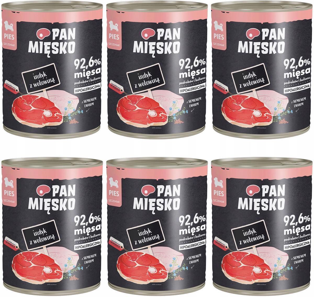 PAN MIĘSKO ZESTAW DLA SZCZENIĄT 6X800: 3 X INDYK Z WOŁOWINĄ 800 3 X WIEPRZOWINA Z KACZKĄ 800 PAN MIĘSKO INDYK Z WOŁOWINĄ 800g - Karma pełnoporcjowa mokra dla szczeniąt Z dodatkiem siemienia lnianego. 92,6% mięsa, podrobów i bulionu. Wyprodukowana w Polsce! Poznaj wysokomięsne karmy mokre dla psów …