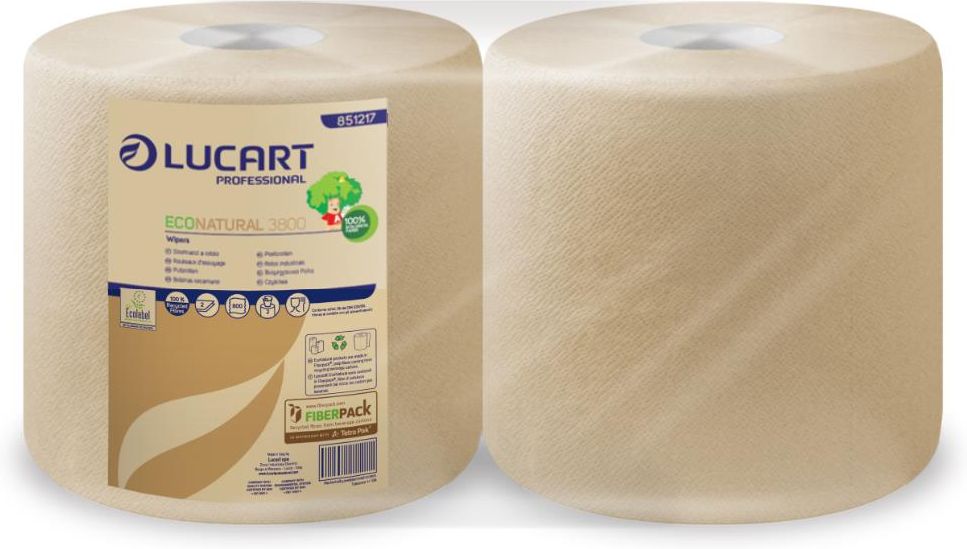 Lucart EcoNatural 3.800 - Czyściwo w roli, 3 warstwy, 200 m, celuloza Fiberpack - 2 rolki Producent: Lucart Professional | Marka: Lucart Kod: 851217 Opis Oferowane czyściwo EcoNatural 3800 marki Lucart, to rozwiązanie, które w doskonałej równowadze łączy trzy elementy, tj. świetną jakość, oszczędne zużycie oraz troskę o środowisko naturalne. najgrubsze z oferowanych czyściw linii EcoNatural dlatego stanowi ono bardzo częsty wybór wśród takich miejsc jak fabryki, warsztaty samochodowe czy kuchnie w restauracjach. Produkty z linii EcoNatural stworzone zostały przy wykorzystaniu nowoczesnej i jedynej w swoim rodzaju, ekologicznej technologii opracowanej specjalnie dla marki Lucart. Prezentowane czyściwo papierowe wykonane jest w 100% z celulozy pozyskanej z kartonów po napojach. Tworzywo to nosi nazwę Fiberpack, a w czasie jego produkcji nie wykorzystuje się żadnych szkodliwych dla środowiska substancji. Proces ten jest w pełni ekologiczny, co potwierdza również certyfikat Ecolabel, przyznawany wyłącznie artykułom spełniającym najbardziej rygorystyczne wymogi. Materiał Fiberpack odznacza się świetną jakością i cechami, które znaleźć możemy w czystej celulozie. Prezentowane czyściwo w roli zapewnia przede wszystkim wysoką chłonność, dzięki czemu sprawdza się idealnie podczas zbierania różnego rodzaju rozlanych płynów, takich jak np. rozpuszczalniki, oleje czy woda. Wyróżnia się także bardzo dużą wytrzymałością - nawet po namoczeniu różnymi środkami czyszczącymi czy płynami do dezynfekcji. Przekłada się to bezpośrednio na poprawienie efektywności naszej pracy. Nawet najtrudniejsze zadania wykonamy w znacznie krótszym czasie. Dzięki temu zużyjemy także zdecydowanie mniej ściereczek, a oferowane opakowanie wystarczy na dłużej i pozwoli zaoszczędzić pieniądze. Jedna rolka czyściwa EcoNatural 3800 ma długość 158 metrów, co przy zakupie całego opakowania daje nam łącznie prawie 1 kilometr produktu do wykorzystania. Taka ilość sprawdzi się doskonale przede wszystkim w miejscach o bardzo dużym natężeniu ruchu, np. w halach przetwórstwa żywności czy liniach produkcyjnych. Cały system został zaprojektowany, aby zwiększyć higienę oraz zmniejszyć ilość odpadów i niepotrzebne koszty. W połączeniu z odpowiednim dozownikiem lub uchwytem, to bardzo wygodny sposób na zachowanie 100% higieny, ponieważ mamy gwarancję, że czyściwo nie miało wcześniej kontaktu ze szkodliwymi drobnoustrojami. W ten sposób możemy także zniwelować nadmierne rozwijanie rolki i wydłużyć jego żywotność. Cechy produktu Duża ilość - prawie 1 km czyściwa papierowego Przyjemne w dotyku Bardzo chłonne = łatwe zbieranie płynów Duża odporność na rozdarcia = mniejsze zużycie Dopuszczone do kontaktu z żywnością Przyjazne dla środowiska - wykonane w 100% z włókien pochodzących z recyklingu Tworzywo Fiberpack - makulatura o właściwościach celulozy Kompatybilne produkty Czyściwo jest kompatybilne z dozownikami i uchwytami marki Lucart o kodach 892001, 892002 oraz 892223I. Parametry Materiał wykonania: Surowiec wtórny Fiberpack (celuloza) Liczba warstw: 3 Wymiary odcinka: 25 x 25 cm Długość rolki: 200 m kolor: caffe latte Liczba listków: 800 Jednostka sprzedaży: 1 karton = 2 rolki Perforacja: tak