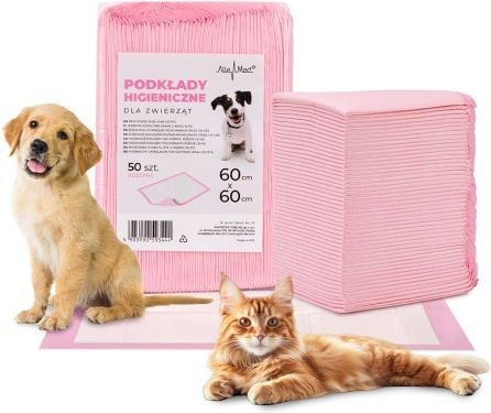 Podkłady mata maty chłonne dla psa nauka sikania higiena czystość AlleMed 50 szt. 60x60 cm różowe Podkłady, maty chłonne dla pupila – komfort, higiena i wygoda każdego dnia. Podkłady chłonne to niezastąpiony element wyprawki dla każdego opiekuna psa. Idealny zarówno do nauki higieny u szczeniąt, jak i dla starszych, schorowanych lub przebywających w rekonwalescencji pupili. Pomaga utrzymać czystość w domu, klatce czy transporterze – bez stresu i nieprzyjemnych niespodzianek. Najważniejsze cechy produktu: Wysoka chłonność – skutecznie zatrzymuje wilgoć i neutralizuje zapachy. Miękka i komfortowa powierzchnia – przyjazna dla łap pupila. Idealna do szkoleń – doskonała pomoc w nauce czystości. Przystosowana do klatek i transporterów – idealna w domu i w podróży. Łatwa w użyciu – wystarczy rozłożyć i gotowe. Wytrzymała i bezpieczna. Ekonomiczna – dostępna w pakietach w korzystnej cenie. Różnorodność kolorów – dla niej - różowy, dla niego - niebieski. Różnorodność rozmiarów – dopasuj podkład do potrzeb i wielkości pupila. Specyfikacja techniczna: Wymiar podkładu: 60x60 cm Ilość w opakowaniu: 50 szt. Warstwy: wielowarstwowa struktura zapewniająca chłonność i ochronę przed przeciekaniem Kolor: biały z nieprzemakalnym spodem różowym Zastosowanie: do użytku domowego, w transporterze, klatce, kojcu Zadbaj o czystość w swoim domu i komfort swojego pupila. Wybierz podkład, który spełnia wszystkie potrzeby – praktyczny, bezpieczny i skuteczny.