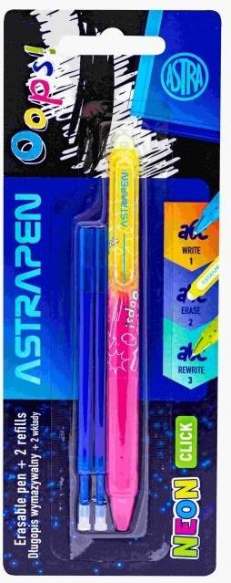 Astra Długopis Wymazywalny Click 0,5mm Astrapen Oops! Neon + 2 Wkłady Łask