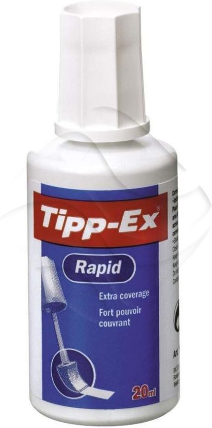 Korektor w butelce TIPP-EX RAPID 20ml z gąbką 8859913 Korektor w plynie TIPP-EX Rapid Szybkoschnący korektor na bazie rozpuszczalnika. Idealny do biura. Posiada unikatową gąbke zapewniającą równomierne i precyzyjne rozprowadzanie. Zakretka oraz rączka trzymająca gąbke wykonana z HDPE. Buteleka …