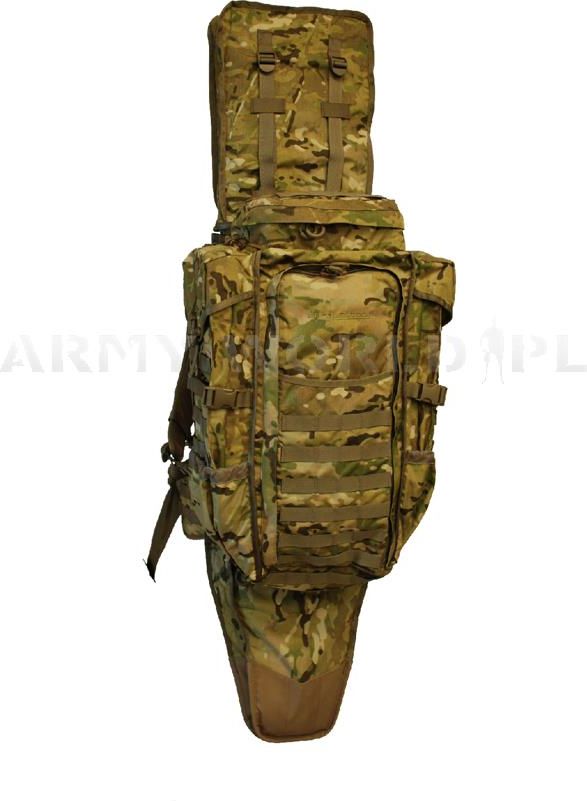 Plecak snajperski wyprodukowany przez amerykańską firmę Eberlestock, która słynie z produkcji wysokiej jakości produktów. Plecak Phantom posiada zintegrowany pokrowiec na broń. Model jest doceniamy przez służby mundurowe na całym świecie. Plecak Phantom to średniej wielkości plecak o pojemności 36 litrów, którego istotną cechą jest możliwość przenoszenia długiej broni oraz niezbędnego sprzętu w części plecakowej. Zastosowane taśmy Molle od frontu i po bokach umożliwiają dopięcie dodatkowych kieszeni czy niezbędnego sprzętu. Główną komorę plecaka można podzielić na pół za pomocą wszytej przekładki. Po bokach plecaka zastosowano dwie kieszenie, jedna z nich jest otwarta druga zaś mocowana na plastikową klamrę. W kieszeniach bocznych z powodzeniem pomieści się 3 litrowy system hydracyjny. W dolnej kieszeni plecaka znajduje się pokrowiec przeciwdeszczowy. W komplecie plecak posiada zintegrowany z systemem nośnym pokrowiec na broń (pojemność 9 litrów). Część plecakowa jest dopinana plastikowymi klamrami zatem w razie potrzeby można ją całkowicie odpiąć. Plecy zostały wzmocnione wyprofilowanym kompozytowym wkładem. Szerokie szelki i pas biodrowy obszyty pianką pomagają skutecznie odciążyć kręgosłup. W przypadku konieczności przenoszenia bardzo ciężkiego ekwipunku do plecaka można dokupić stelaż Endo (brak w zestawie) - w komplecie kompozytowy wkład na plecy. Wymiary części plecakowej: wysokość 61 cm, szerokość 28 cm, głębokość 18 cm. Wymiary pokrowca na broń: długość 86 cm, szerokość 25 cm, głębokość 7 cm. Eberlestock Phantom Sniper Pack from Eberlestock on Vimeo.