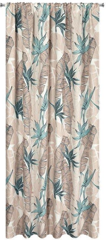 Zasłona ogrodowa 155x200 tunel bananowiec Zjawiskowa, wodoodporna zasłona ogrodowa z tunelem, rozmiar 155x200 cm, wzór w liście bananowca i strelicji Skład poliester 100% Kolorystyka beżowy turkusowy biały Gramatura materiału: 180 GSM Styl: klasyczny Kształt: prostokątny Wzór: roślinny …