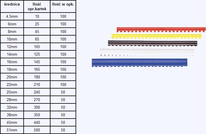 Oryginalne opakowanie zawierające 50 szt. grzbietów do bindowania w rozmiarze 51 mm, oprawiających do 510 kartek.