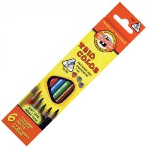Trójkątne kredki pastelowe w drewnianej obudowie. 6 kolorów zapakowanych w kartonowe pudełko. Ergonomiczny trójkątny kształt pozwala na optymalne trzymanie i prowadzenie kredki. Przeznaczone są zarówno dla dzieci w wieku szkolnym, jak i przedszkolaków. Kredki te cieszą się coraz większą popularnością. Kredki szkolne Koh-I-Noor Triocolor Ołówek 3,2 mm 6-pak: --- 6 trójkątnych lakierowanych kredek szkolnych-Długość = 175 mm-D = 7 mm-Ołówek = 3,2 mm Ergonomiczny trójkątny kształt umożliwia optymalne trzymanie i prowadzenie kredki.