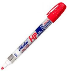 Marker olejowy do znaczenia powierzchni zaolejonych, mokrych lub malowanych nie zawiera ksylenu; niski poziom zapachu charakteryzuje się dużą wytrzymałością farba jest bardzo widoczna i trwała przeznaczony jest do znakowania metalu (chropowatego i gładkiego), plastiku, szkła, gumy, kartonu i drewna końcówka: 2-4 mm szybko schnie; odporny na promieniowanie UV nie zawiera ksylenu; niska zawartość fluorowców i siarki dostępne kolory: biały, niebieski, pomarańczowy, brązowy, srebrny, żółty, zielony, fioletowy, jasnoniebieski, złoty, czerwony, czarny, różowy, jasnozielony zakres temperatury pracy: -20°C do + 50 C wytrzymałość: do +70 C producent: Markal LA-CO (USA)