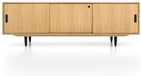 %description% WYMIARY Szerokość: 200 cm Głębokość: 45 cm Wysokość: 66 cm (48 cm - wysokość korpusu, 18 cm - wysokość nóg drewnianych z głównego zdjęcia) MATERIAŁ Korpus komody: fornir dąb Uchwyty: mosiężne Nogi: drewniane, stalowe lub cokół z forniru (do wyboru) Dębowa komoda przesuwna D_S04 To …