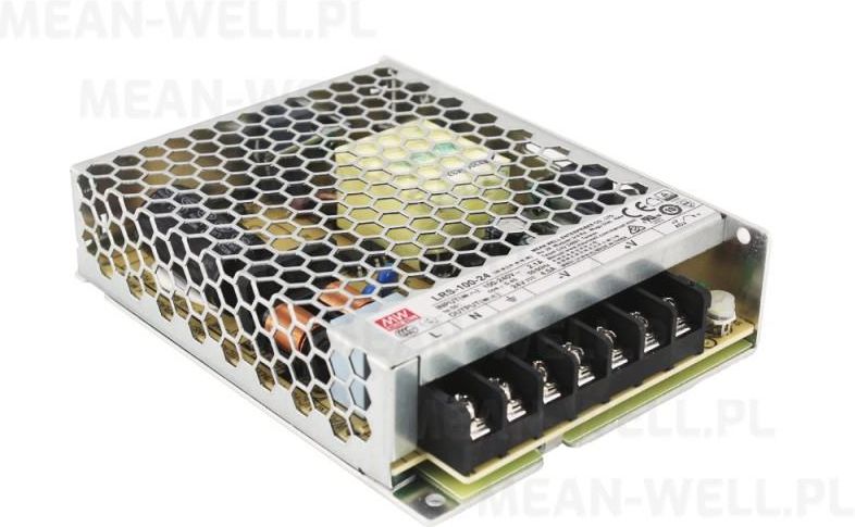 Profesjonalny zasilacz modułowy LED 24V 100W MEAN WELL LRS-100-24 Firma MEAN WELL Zasilacze MEAN WELL to wysokiej jakości kompletnie niezawodne źródło zasilania. Marka Mean Well jest globalnym producentem mając w swojej ofercie ponad 10 000 modeli zasilaczy. Są to zasilacze stało-napięciowe, stało-prądowe, hermetyczne , montażowe, na szynę DIN czy medyczne. Marka Mean Well została założona w 1982 roku a obecnie jest 4 największym producentem zasilaczy na świecie. Zasilacze LRS marki MEAN WELL LRS-100 to bardzo dostępny cenowo niezawodny zasilacz. Bezawaryjny mocny oraz chłodzony pasywnie idealnie nadaje sie do zabudowy, zasilania oświetlenia w domu, sklepie czy różnych instalacjach. Mean Well LRS to kompromis miedzy niezawodnością, ceną, wymiarami i sporą mocą. Posiada także regulację napięcia. Polecany do wszelkich zastosowań wewnętrznych. Opis serii Seria LRS-100 to jednowyjściowy zasilacz typu zamkniętego o mocy 100W i 30mm nisko profilowej konstrukcji. Przyjmując pełny zakres wejścia 85-264VAC, cała seria zapewnia linię napięcia wyjściowego 3.3V, 5V, 12V, 15V, 24V, 36V i 48V. Cała seria działa od -30°C do 70°C w warunkach konwekcji powietrza bez wentylatora. Zapewniając bardzo niski pobór mocy bez obciążenia (poniżej 0,3 W) jest zgodny z międzynarodowymi przepisami bezpieczeństwa, takimi jak TUV BS EN / EN2368-1, BS EN / EN60335-1, BS EN / EN61558-1 / -2-16, UL62368-1 i GB4943. Cechy • Wytrzymuje napięcie wejściowe 300VAC przez 5 sekund • Pobór mocy bez obciążenia < 0,3 W • Miniaturowy rozmiar i niski profil 1U • Zabezpieczenia: Przepięcie / Przeciążenie / Zwarcie • Chłodzenie przez swobodną konwekcję powietrza • Wysoka wydajność, wysoka niezawodność i długa żywotność • 3 lata gwarancji Zastosowanie Taśmy LED: Zasilacz LRS jest idealny do zasilania taśm LED, które są powszechnie stosowane w oświetleniu dekoracyjnym, podświetleniu mebli, a także w oświetleniu akcentującym. Lampy LED: Może być stosowany do zasilania różnych rodzajów lamp LED w aplikacjach domowych i komercyjnych. Systemy automatyki: Zasilacz LRS jest używany do zasilania różnych urządzeń w systemach automatyki domowej, takich jak sterowniki, czujniki i inne urządzenia inteligentnego domu. Laboratoria i warsztaty: Może być używany do zasilania sprzętu laboratoryjnego i warsztatowego, takiego jak stacje lutownicze, narzędzia pomiarowe i inne urządzenia elektroniczne. Zasilanie sprzętu telekomunikacyjnego: LRS może być stosowany do zasilania różnego rodzaju sprzętu telekomunikacyjnego, w tym routerów, przełączników i innych urządzeń sieciowych. Maszyny i urządzenia przemysłowe: Zasilacz LRS jest stosowany do zasilania różnych urządzeń w środowiskach przemysłowych, takich jak systemy sterowania, panele operatorskie, czy systemy bezpieczeństwa. Automatyka przemysłowa: Używany w aplikacjach automatyki przemysłowej, gdzie stabilność i niezawodność zasilania są kluczowe. UPS i systemy zasilania awaryjnego: Może być częścią systemów zasilania rezerwowego, zapewniając ciągłe działanie urządzeń w przypadku zaniku głównego zasilania. LRS-100-24 Specyfikacja Napięcie wyjściowe: 24V Moc wyjściowa: 100W MAX prąd na wyjściu: 4.5A Stopień wodoodporności: IP20 Regulacja napięcia na wyjściu: 21,6 ~ 28,8V Napicie wejściowe: 85 ~ 264VAC Temperatura pracy: -30 - +70 C Ochrona przeciw przeciążeniowe: Tak (Hiccup) Ochrona przeciwprzepięciowa: Tak (Hold & Restart) Certyfikaty bezpieczeństwa: UL60950-1, TUV EN60950-1, EN60335-1 Model: LRS-100-24 Wymiary: 129 x 97 x 30mm Waga: 340g Gwarancja 3 Lata