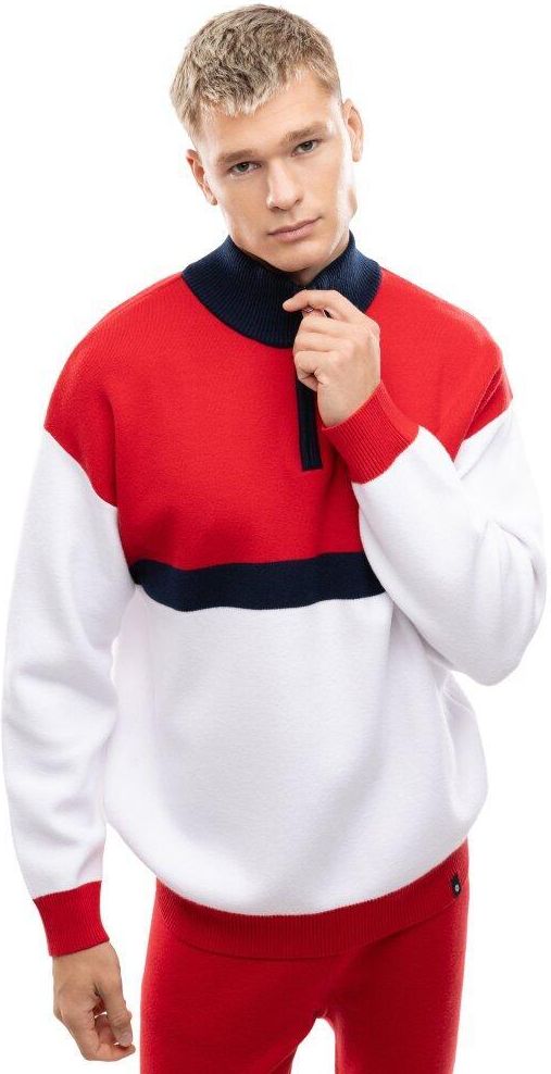 Męski sweter dzianinowy ze stójką Siroko Sapporo red Łask