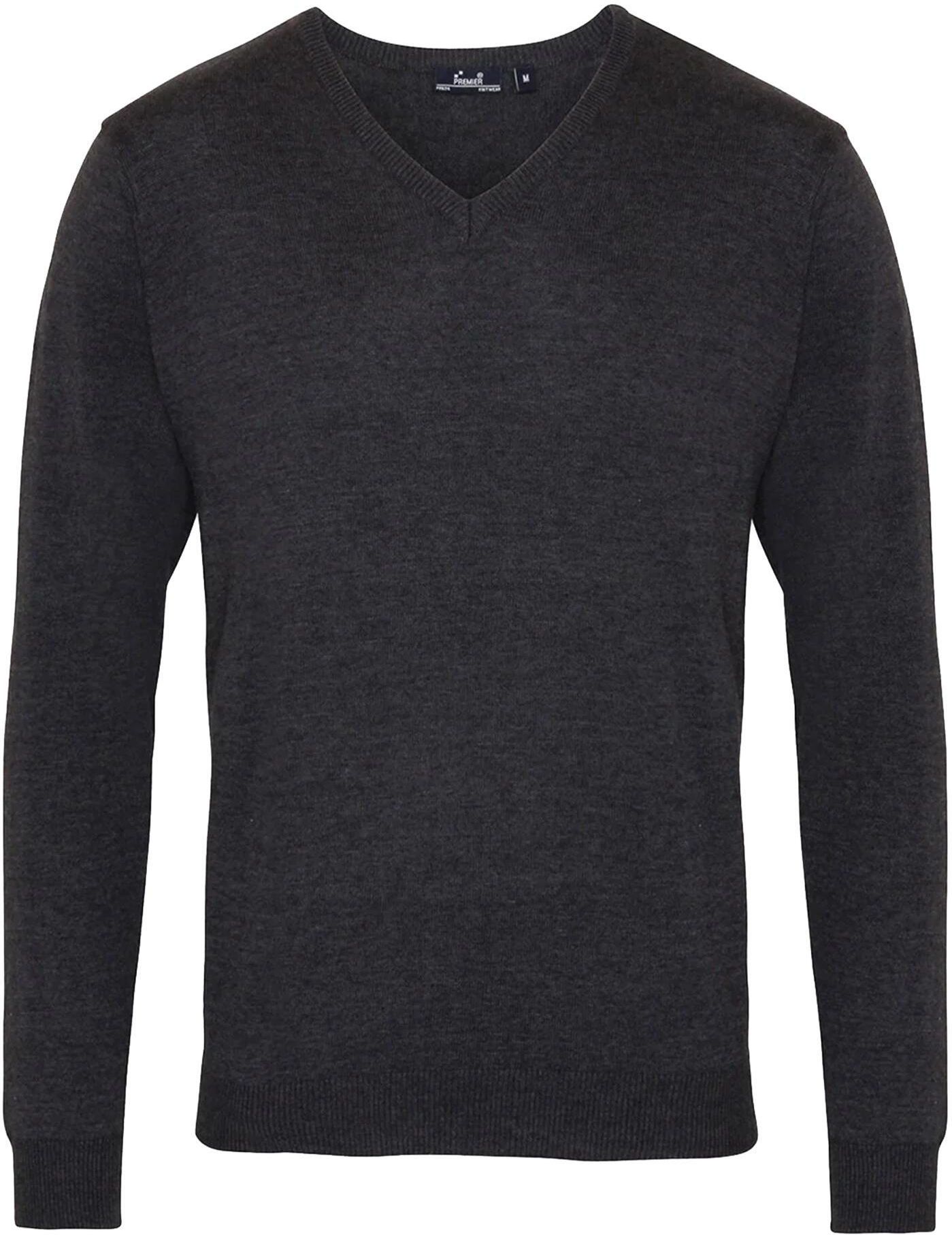 Premier Sweter Męski Z Dzianiny Dekoltem V Brązowe Łask
