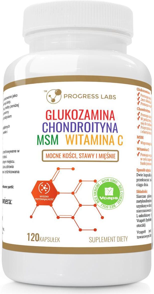 Progress Labs Glukozamina Wołowa Chondroityna Msm Witamina C 120 Kaps. Łask