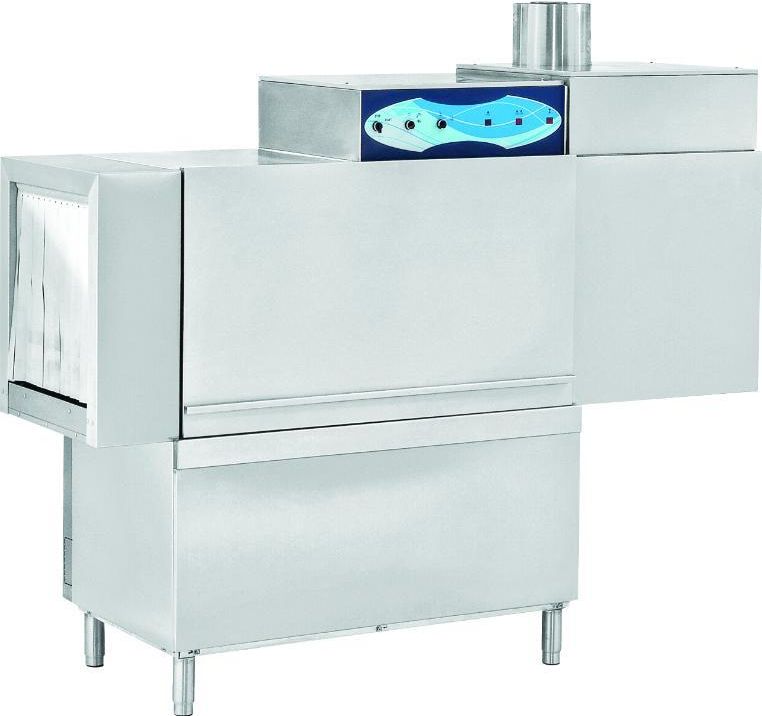 Opis: wszystkie części, które mają kontakt z wodą są wykonane z wysokiej jakości stali nierdzewnej automatyczne włączanie cyklu mycia, gdy naczynia są w zmywarce system bezpieczeństwa zatrzymujący prace przy otwartych drzwiach lub innych problemach wlotowy regulator wody elektroniczny termometr pokazujący temperaturę wody podczas mycia i płukania temperatury kontrolowane termostatem: mycia wstępnego w zakresie 40-45°C, mycia właściwego w zakresie 50-60°C, płukania do 85°C dwie prędkości przesuwu taśmy z koszami panel sterowania umieszczony na górze mikroprzełącznik, który zatrzymuje prace zmywarki, jeśli przenośnik zablokuje się ramiona myjące i płukające, a filtry można łatwo zdemontować w celu wyczyszczenia nóżki ułatwiające właściwe wypoziomowanie zmywarki modułowa konstrukcja z załadunkiem z prawej lub lewej strony możliwość przyłączenia modułu suszącego, wymiennika ciepła, komina wylotowego dostosowane do koszy 50x50 cm w zestawie: 1 kosz na szkło, 1 kosz na sztućce i 4 kosze na talerze wymiennik ciepła, 70 cm - 10 664 zł netto wymiennik ciepła, 90 cm - 10 980 zł netto moduł suszący K70, 450x800x270 mm - 9 564 zł netto moduł suszący K90, 650x800x300 mm- 12 117 zł netto komin wylotowy - 1 869 zł Parametry techniczne: wymiary zewnętrzne [mm]: 2550x800x1750 wymiary z modułem suszącym K70 [mm]: 3000x800x2020 wymiary z modułem suszącym K90 [mm]: 3200x800x2050 maksymalna wysokość przejścia [mm]: 600 szerokość taśmy [mm]: 540 moc całkowita [kW]: 34,8 zasilanie [V]: 400 moduły: mycie wstępne, mycie właściwe, podwójne płukanie moc pompy myjącej [kW]: 1,5 moc pompy mycia wstępnego [kW]: 0,6 moc silnika przenośnika [kW]: 0,55 moc modułu podwójnego płukania [kW]: 0,2 moc grzałek bojlera [kW]: 24 pojemność zbiornika do mycia głównego [l]: 125 pojemność zbiornika do mycia wstępnego [l]: 54 zużycie wody do płukania [l/kosz]: 3-3,75 wydajność [ilość talerzy/h]: 2800-3600 Dlaczego warto zmywarkę tunelową koszową Resto Quality?: Zmywarka o solidnej i wytrzymałej konstrukcji Łatwe sterowanie Możliwość zastosowania różnych modułów, w zależności od potrzeb Bardzo duża wydajność Wygodny załadunek koszy 12 miesięczna gwarancja na terenie całej Polski Gwarantowany bon zakupowy od producenta o wartości 300 zł netto w przypadku awarii urządzenia