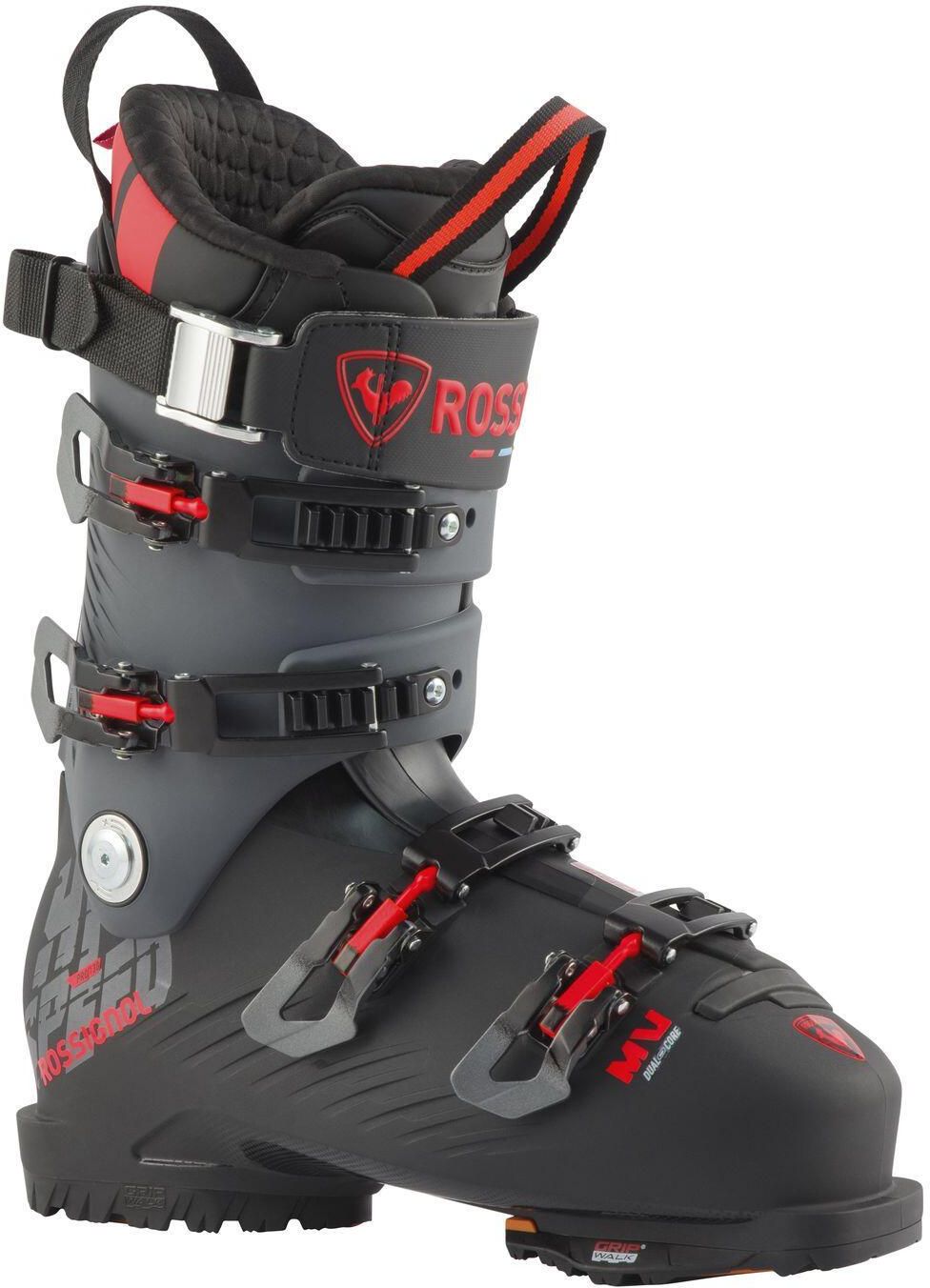 Kontrola inspirowana wyścigami w połączeniu z doskonałym dopasowaniem i komfortem. Buty narciarskie Rossignol Hi-Speed Pro 130 Carbon MV łączą zaawansowaną konstrukcję skorupy z idealnym dopasowaniem od razu po wyjęciu z pudełka dla narciarzy preferujących średnią objętość buta. Dzięki Generative Design i wzmocnionym włóknem węglowym materiałom zoptymalizowaliśmy skorupę, aby zapewnić maksymalny transfer energii oraz kontrolę przy dużych prędkościach na każdym skręcie. Regulowany flex, pochylenie do przodu i canting umożliwiają personalizację reakcji buta do indywidualnego stylu jazdy. Nasz but wewnętrzny w pięciu strefach zapewnia maksymalny komfort dzięki termoformowalnej konstrukcji, która dopasowuje się do pięciu kluczowych obszarów stopy, a wzmocnione strefy utrzymują precyzyjny przekaz mocy. Zapnij się w model Pro 130, aby cieszyć się wyjątkową kontrolą i całodziennym komfortem. Szerokość Medium Fit Skorupa o szerokości 100 mm zapewnia precyzyjne i wygodne dopasowanie, które zapewnia równowagę pomiędzy komfortem i kontrolą nad nartami. Lekkość i pełna moc Projekt Generative Design, oparty na analizie danych, minimalizuje grubość ścian skorupy, zapewniając efektywne wykorzystanie materiału, zmniejszenie wagi oraz poprawę transferu mocy. Lepsza jazda, lepsze dopasowanie Technologia Dual Core zapewnia celowe przekazywanie mocy oraz otulenie skorupy, co przekłada się na dynamiczny odskok, precyzję i kontrolę. Regulowany flex Prosta regulacja tylnej części buta umożliwia dostosowanie zakresu flexu o +5/-5, zapewniając spersonalizowaną moc, wydajność oraz komfort. Regulacja pochylenia do przodu Regulowany spoiler na cholewce pozwala na ustawienie dwóch poziomów pochylenia do przodu – od 10,6 do 12,6 stopni. Precyzyjne dopasowanie. Komfort przez cały dzień. Wysoka wydajność. Nasz 5-strefowy but wewnętrzny (Preshaped Liner) dopasowuje się do stopy, obejmując pięć stref, w tym okolice kości śródstopia, kości łódkowatej i kostki. Całkowicie termoformowalny liner zawiera usztywnione strefy, które poprawiają trzymanie stopy i precyzyjne dopasowanie, przekładające się na efektywne przekazywanie mocy. Ocieplenie z izolacją Thinsulate™ Platinum utrzymuje ciepło stóp nawet w wilgotnych i zimnych warunkach, zapewniając całodzienny komfort oraz zaawansowaną kontrolę nad nieprzyjemnymi zapachami. Zoptymalizowane dopasowanie i ciepło Bezszwowy Toe Box eliminuje punkty nacisku, zapewniając lepsze dopasowanie od razu po wyjęciu z pudełka oraz zmniejsza utratę ciepła o 20%. Pewna przyczepność w każdym terenie Przymocowane fabrycznie podeszwy GRIPWALK® z gumowym bieżnikiem i zaokrąglonym noskiem zapewniają naturalny ruch podczas chodzenia oraz zwiększoną przyczepność.