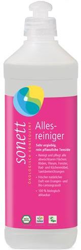 SONETT Uniwersalny środek czyszczący, 500 ml Aktywne składniki myjące zawarte w Sonett All Purpose Cleanser są wyjątkowo dobrze tolerowane przez skórę. Podobnie jak wszystkie produkty Sonett, ten uniwersalny płyn jest wysoce skoncentrowany, a zatem bardzo ekonomiczny w użyciu. Nadaje się do czyszczenia płytek, kuchni, łazienek, karoserii samochodowych i innych gładkich powierzchni. Nadaje się również do czyszczenia okien na dużą skalę. Dzięki zawartości skórki pomarańczowej i trawy cytrynowej produkt ma przyjemny i świeży zapach. Surowcami do produkcji tensydów cukrowych są cukier, skrobia i tłuszcz kokosowy. Wraz z pochodnymi oleju kokosowego i olejku ze skórki pomarańczy tworzą kombinację uzupełniających się aktywnych środków myjących o doskonałych właściwościach rozpuszczających tłuszcz i wysokiej tolerancji dla skóry. W procesie produkcji tenzydów cukrowych i pochodnych oleju kokosowego, surowce roślinne, skrobia, cukier i tłuszcz są ekstrahowane z części, ale pozostają w pełni zachowane w swojej naturalnej strukturze. W związku z tym mikroorganizmy mogą bardzo szybko i całkowicie rozłożyć te tenzydy. Czyści i pielęgnuje wszystkie zmywalne powierzchnie: podłogi, płytki, okna, meble łazienkowe i kuchenne, powierzchnie sanitarne Świeży, naturalny zapach ekstraktu ze skórki pomarańczy i organicznego olejku eterycznego z trawy cytrynowej. 100% biodegradowalny Produkt posiada certyfikat NCP - Nature Care Product oraz certyfikat zrównoważonego rozwoju CSE. Produkt wegański wymieniony przez Vegan Society. Zastosowanie: Rozcieńczony: Wlać 5-10 ml produktu wielofunkcyjnego na 10 litrów wody, w zależności od stopnia zabrudzenia. Do mycia okien: 5 ml płynu uniwersalnego na 5 litrów wody. Użyj gąbki i gumowej ściągaczki do okien. Nierozcieńczony: Kilka kropli na gąbkę lub wilgotną ściereczkę. Skład: Aqua, Alkylpolyglucoside C10-C16 (Lauryl Glucoside), Sodium C8-C14 Fatty Alcohol Sulfate (Sodium Octyl Sulfate, Sodium Lauryl Sulfate), Alcohol, Sodium Chloride, Limonene, Sodium Citrate, Parfum*, Citral* * z certyfikowanych upraw ekologicznych Dane techniczne: Gęstość: (20°C) ok. 1,03 g/cm³ Wartość pH: (20°C, 5 g/l H₂O) ok. 7-8 (neutralne pH) Opakowanie: 500 ml Wszystkie opakowania nadają się do recyklingu Ostrzeżenie: Jeśli to możliwe, przechowywać w temperaturze 10-25 °C. Dopuszczalne są krótkotrwałe spadki temperatury poniżej lub powyżej zalecanego zakresu temperatur bez uszkodzenia produktu. PRZECHOWYWAĆ W MIEJSCU NIEDOSTĘPNYM DLA DZIECI. W razie przypadkowego połknięcia należy skontaktować się z lekarzem. Zawiera ekstrakt ze skórki pomarańczy. Może powodować reakcję alergiczną. O Sonett: Od 1977 roku Sonett jest pionierem w dziedzinie leków ekologicznych, tj. leków przyjaznych dla środowiska i człowieka. Sonett produkuje detergenty do prania, płyny czyszczące, tabletki do zmywarek i inne skuteczne produkty zapewniające czystość w domu. Coraz częściej w produktach można znaleźć składniki pochodzące z upraw dynamicznych lub ekologicznych, takie jak oliwa z oliwek, olej rzepakowy lub kokosowy, olej palmowy lub olejki eteryczne. Produkty Sonett są zatem w 100% biodegradowalne i hipoalergiczne. Woda używana do produkcji jest poddawana biodynamicznej rytmizacji, a do produktów Sonett dodawane są mieszanki energetycznych ziół i esencji z kamieni szlachetnych i metali. Seria Sensitive została opracowana specjalnie z myślą o wrażliwej skórze alergików i dzieci. Produkty SONETT nie zawierają: Syntetyczne substancje zapachowe Barwniki syntetyczne Syntetyczne środki konserwujące Surowce z upraw modyfikowanych genetycznie Enzymy Fosforany Rozjaśniacze optyczne Tłuszcz zwierzęcy lub inne części zwierzęce (wyjątek stanowi żółć bydlęca zawarta w mydle do plam SONETT, będąca produktem ubocznym rolnictwa biodynamicznego)