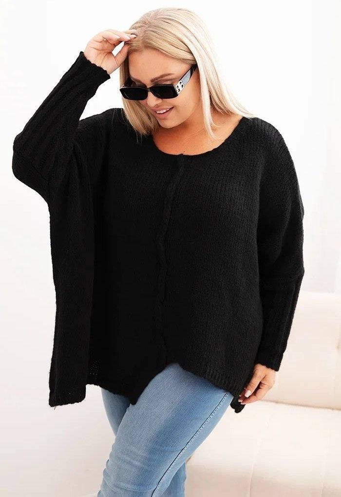 Sweter Damski Plus Size Czarny Rękaw 3/4 Oversize Dzianina 2XL–4XL Łask