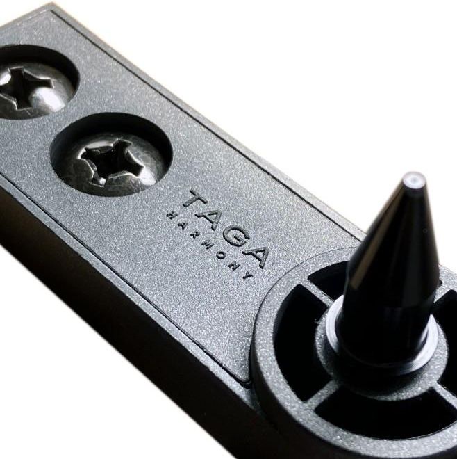 Zestaw nóżek i kolców DLA LEPSZEGO DŹWIĘKU I STABILNOŚCI Jeśli masz problemy z transparentnością dźwięku i jego słabą rozdzielczością, a także gdy Twoje kolumny mają niewyraźny i słabo zdefiniowany bas, na ratunek przychodzi nasz zestaw nóżek TSF-002! KLUCZOWE CECHY Izolacja kolumny głośnikowej od podłogi w celu zmniejszenia jej interakcji z innymi przedmiotami i powierzchniami w pomieszczeniu. Rezultatem jest wyraźniejszy i bardziej szczegółowy dźwięk z mocnym i dobrze zdefiniowanym basem. Ograniczenie niepożądanych drgań mechanicznych, które mogą negatywnie wpływać na jakość dźwięku. Dzięki wyjątkowo sztywnej konstrukcji i budowie (nóżki wzmocnione nylonem z aluminiowymi szpilkami). Kompensacja nierówności powierzchni dzięki regulowanej wysokości szpilek (0 - 3 mm). Zapewnienie dodatkowej stabilności dla kolumny i zmniejszenie ryzyka jej przewrócenia. Kompatybilność z uniwersalnym gwintem M8 zarówno dla nóżek, jak i szpilek, co pozwala zamiennie używać zestawu nóżek/szpilek lub samych szpilek. Łatwa samodzielna instalacja w standardowych gniazdach z gwintem M8. Niezwykle masywna konstrukcja! Utrzymuje wagę kolumny do 45 kg* *dotyczy kolumny zainstalowanej na 4 nóżkach/szpilkach lub tylko 4 szpilkach Elegancki i dyskretny design, który doda szyku Twojemu zestawowi głośnikowemu! Specyfikacja Techniczna: Typ / Konstrukcja: Zestaw 4 nóżek i 4 szpilek (kolców) do kolumny głośnikowej Wysokość19.7 mm (bez szpilek) 44.7 mm (z szpilkami) Wymiary nóżki: Długość: 95 mm, Szerokość: 30 mm, Wysokość: 15 - 19.7 mm, Górna nakładka: wys. 10 mm / średn. 30 mm Odległość - otwory montażowe: Koniec nóżki - środek tylnego otworu: 12 mm, Pomiędzy środkami otworów: 20 mm Wymiary szpilki: Całkowita wys.: 59 mm, Min. wys. (całkowicie wkręcona): 25 mm, Gwint M8 Zakres regulacji wysokości szpilki: 0 - 3 mm (w nóżce) Max waga kolumny: 45 kg / zestaw, (na 4 x nóżki/szpilki lub 4 x szpilki) Wymagania instalacyjne: Dwa gwintowane gniazda M8, Min głębokość gniazd: 25 mm Kompatybilne kolumny TAGA Harmony: Gotowe do użycia (z wbudowanymi gniazdami M8): TAV-807F TAV-607F TAV-507F Zawartość zestawu: Nóżka x 4 szt., Okrągła górna nakładka x 4 szt., Aluminiowa szpilka (kolec) x 4 szt., Śruba M8 x 8 szt. Waga: 0.6 kg / zestaw *kolumna na zdjęciu nie wchodzi w skład zestawu