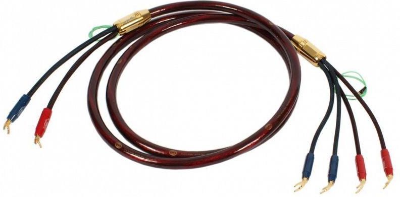 Kabel głośnikowy konfekcjonowany Van den Hul The Nova The Nova to zaawansowany, czterożyłowy kabel głośnikowy, plasujący się poniżej flagowego modelu The Super Nova. Został zaprojektowany dla wymagających audiofilów, którzy oczekują najwyższej klasy transparentności i dynamiki przy zachowaniu mniejszych wymiarów przewodu. Jego kluczowym elementem są cztery bardzo grube przewodniki o przekroju AWG 8 (8,4 mm²), co zapewnia odpowiednią moc przewodzenia. Dzięki swojej wszechstronnej, poczwórnej konstrukcji, The Nova doskonale sprawdza się w trzech trybach podłączenia: Twin Lead: Połączenie przewodników w pary tworzy potężny kabel o efektywnym przekroju AWG 5 (16,8 mm²) i niemal zerowej rezystancji (0,0011 Ohm/m). Bi-wiring/Bi-amping: Użycie czterech oddzielnych żył czyni go jednym z najmasywniejszych kabli dostępnych do bi-wiringu, z wirtualnie nieistotną rezystancją (0,0022 Ohm/m) dla każdej żyły. Przewodniki to zaawansowana konstrukcja Super-Copper-Silver Hybrid: ultra-czysta Miedź Beztlenowa (MC OFC) została pokryta litą warstwą czystego srebra metodą współwytłaczania, co gwarantuje maksymalną gęstość krystaliczną i chroni przed zanieczyszczeniami chemicznymi. Każdy przewodnik jest dodatkowo otoczony warstwą liniowego węgla strukturalnego (LSC), która minimalizuje szum i zapewnia transparentny dźwięk. Kabel posiada podwójne ekranowanie, co skutecznie blokuje zakłócenia radiowe i elektromagnetyczne (EMI/RFI), pomagając obniżyć szum systemowy i wydobyć więcej detali. Płaszcz z wytrzymałego materiału HULLIFLEX EHD w kolorze rubinowej czerwieni chroni przed uszkodzeniami i środkami chemicznymi, zapewniając długą żywotność. Specyfikacja techniczna: Typ kabla: Głośnikowy, poczwórna żyła Liczba przewodników: Cztery niezależne żyły sygnałowe Przekrój pojedynczego przewodnika: 8,4 mm² (AWG 8) Rezystancja w konfiguracji Twin Lead: 0,0011 Ohm / metr na żyłę. Materiał przewodnika: Super-Copper-Silver Hybrid: Metal: Ultra-czysta Miedź Beztlenowa o Kryształach Dopasowanych (MC OFC) Powłoka: Lita warstwa czystego srebra (wytłaczana, nie galwanizowana) Warstwa hybrydowa: liniowy węgiel strukturalny (LSC) Ekranowanie: Podwójne, z przewodem uziemiającym na każdym końcu. Izolacja płaszcza zewnętrznego: HULLIFLEX EHD (bez PVC i plastyfikatorów). Kolor płaszcza: Przezroczysty rubinowy czerwony Wtyki: Grubo złocone 24-karatowym złotem, lutowane cyną srebrną. Wskaźnik Polaryzacji: Izolacja żył o różnym kształcie i nadruk w sekcji środkowej.